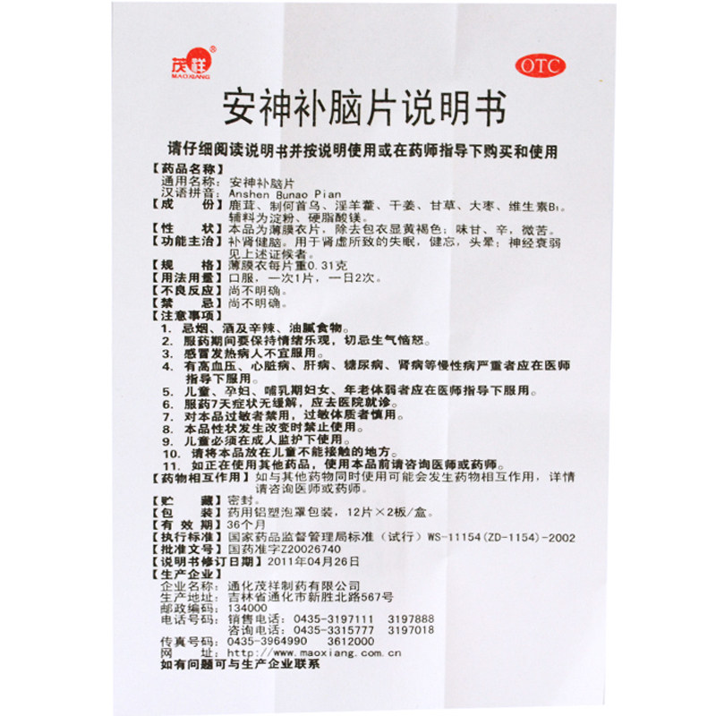 茂祥 Успокаивает нервы и питает мозг, 24 таблетки, питают почки и укрепляют мозг, недостаточность почек, бессонница, неврастения, стабилизация и улучшение сна YP