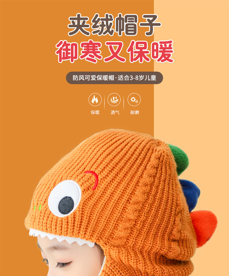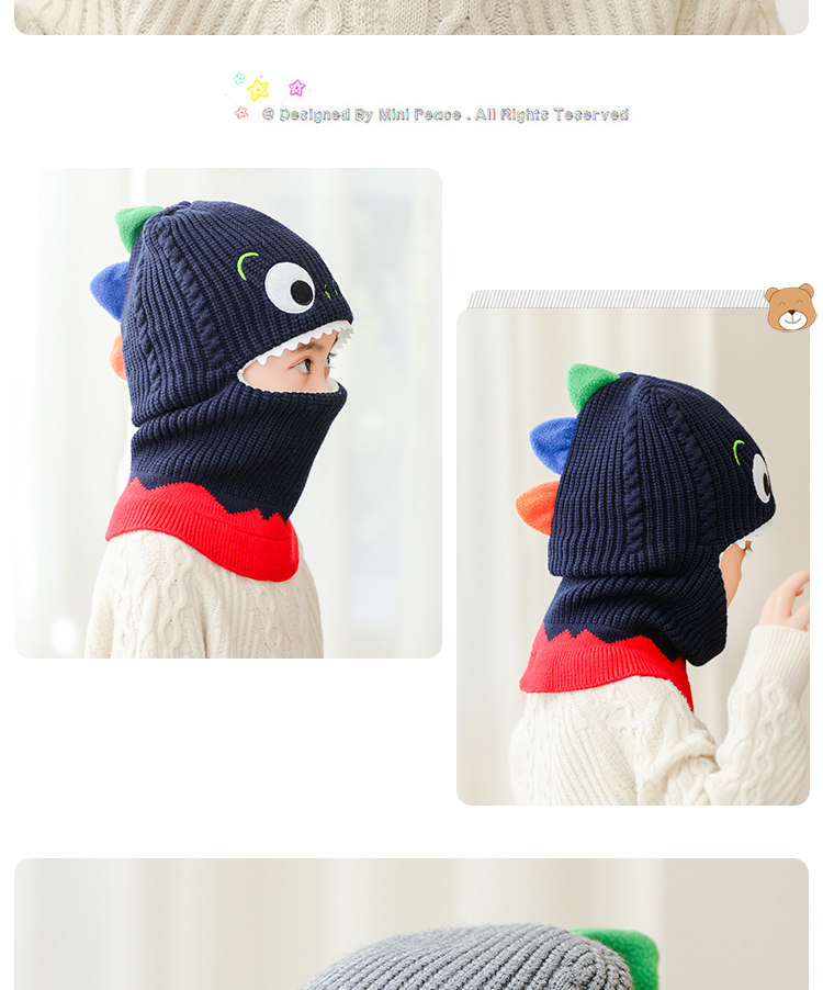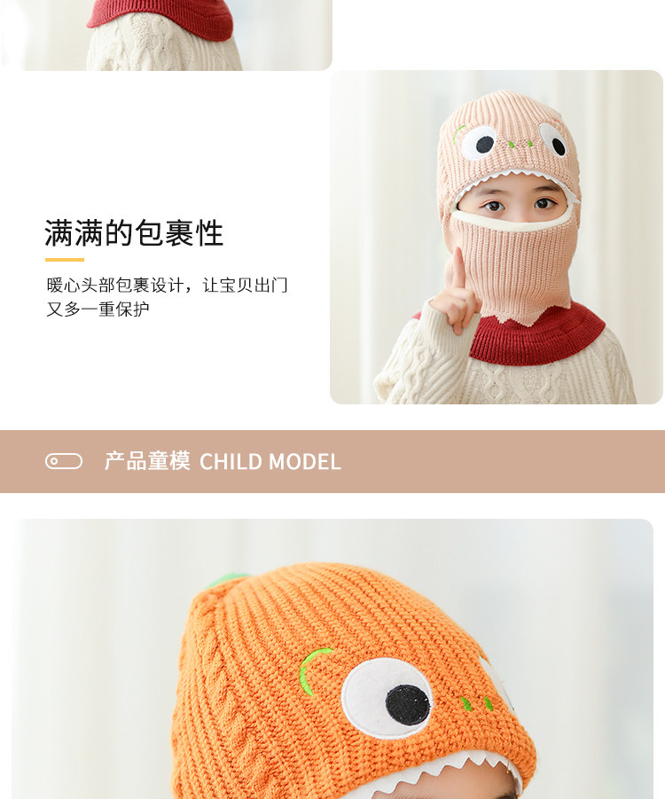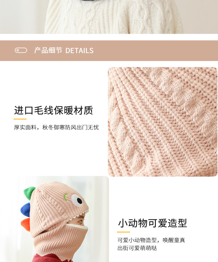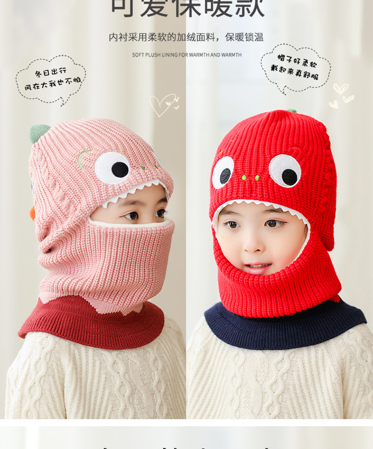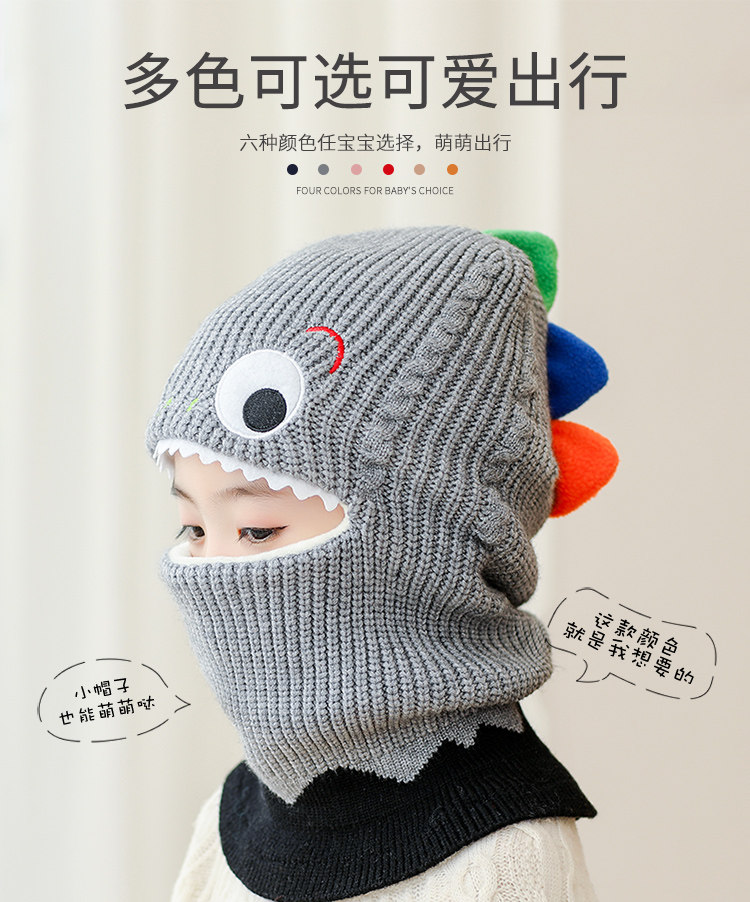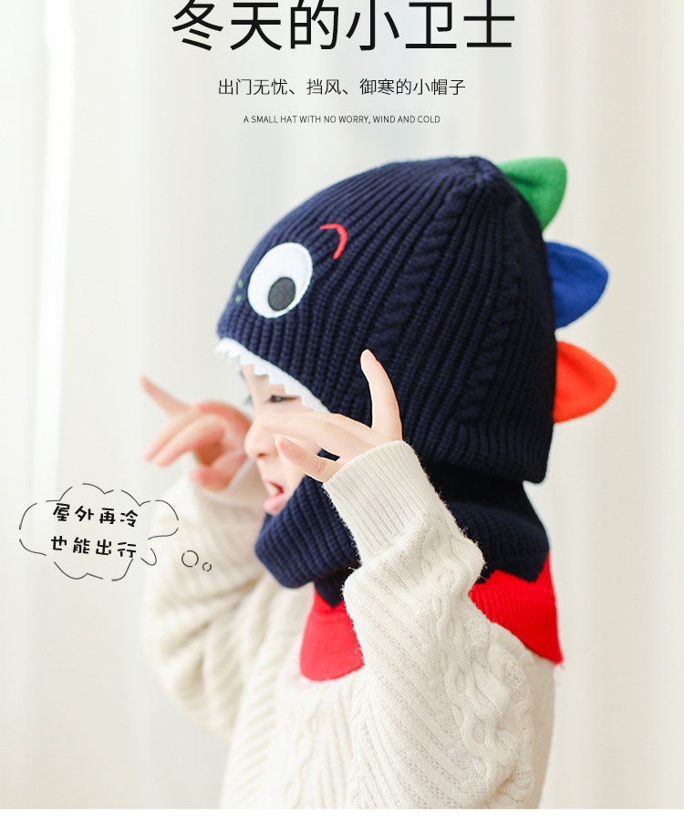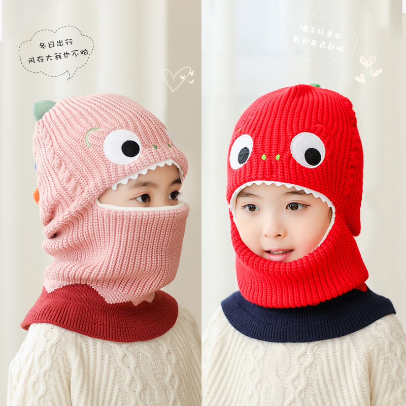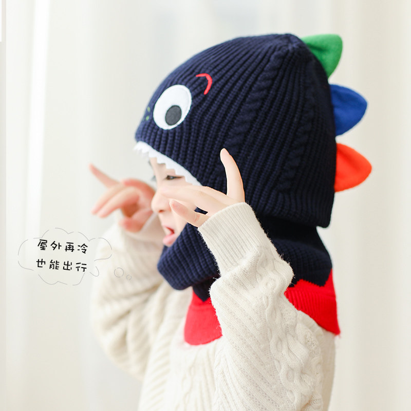 Детский динозавр, демисезонная утепленная ветрозащитная шапка, шерстяной шарф подходит для мужчин и женщин, маска, в корейском стиле