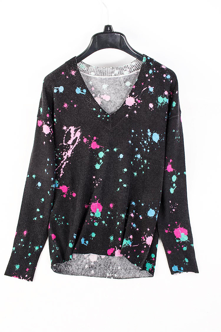 80211 трудно встретить!Condini Pure кашемира цифровой струйной печати V -neck Casual Cashmere Sweater