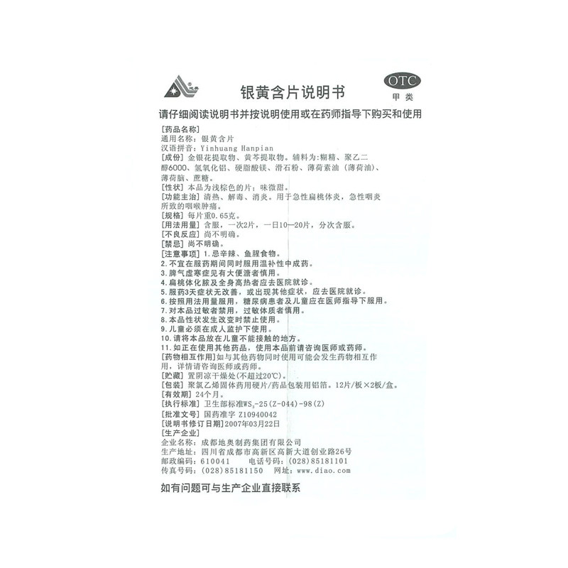 地奥 Серебряные желтые таблетки 24 таблетки/коробка Острый тонзиллит Фарингит Фарингит Воспаление горла, отеки горла, боль, тепло и анти -инфляция