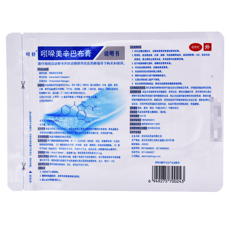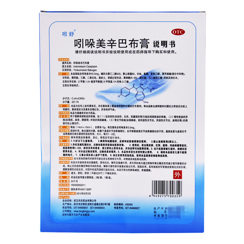 吲舒 Индометациновая мазь бабу, 2 пластыря/пакета, мазь, спортивная травма, местная боль в мягких тканях, боль в шейном отделе, ушиб