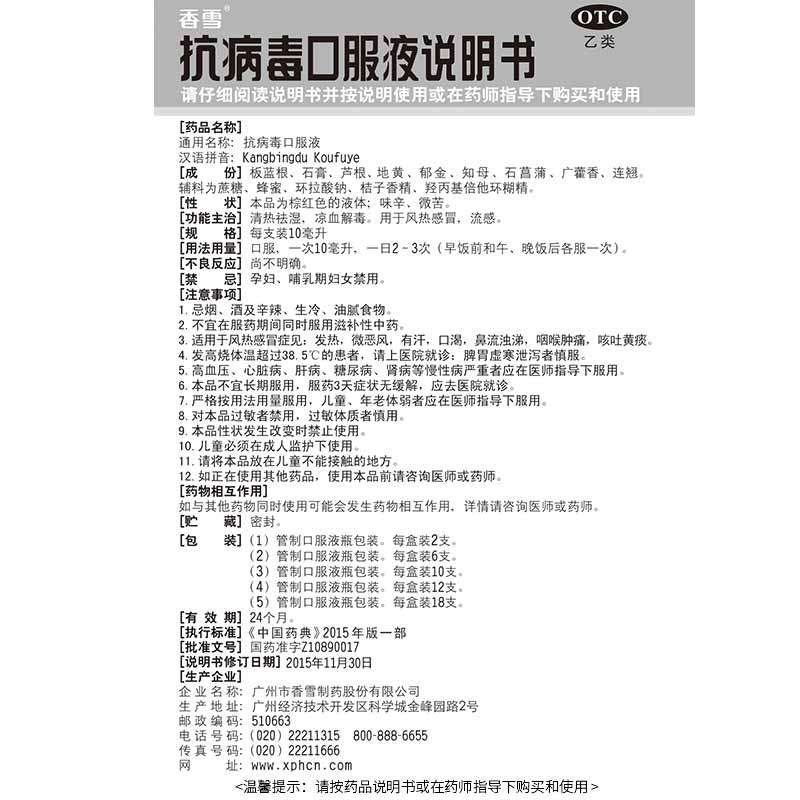 香雪 Антивирусный пероральный раствор 10 ветров, холодный, холодный, тепло, текущий нос, горло, боль, желтая мокрота