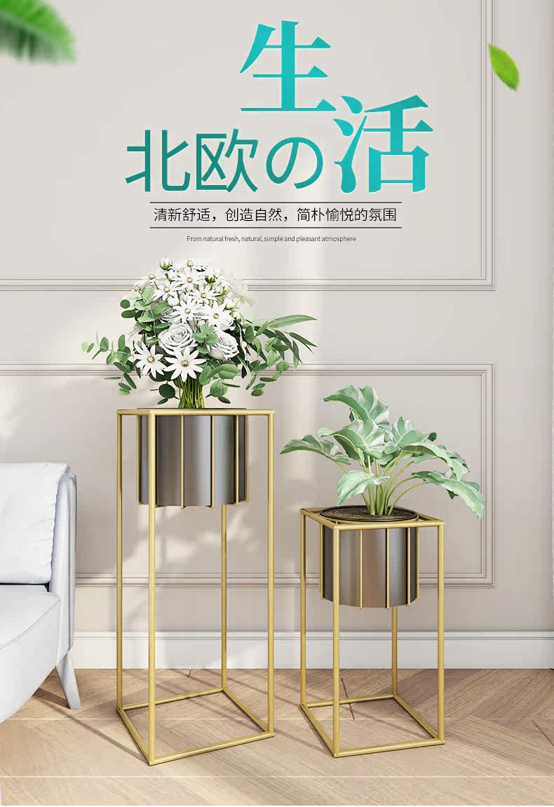 Северная железная стойка в гостиной гостиной гостиной из простых легких роскошных полков Балкон, зеленая стойка для посадки укропа