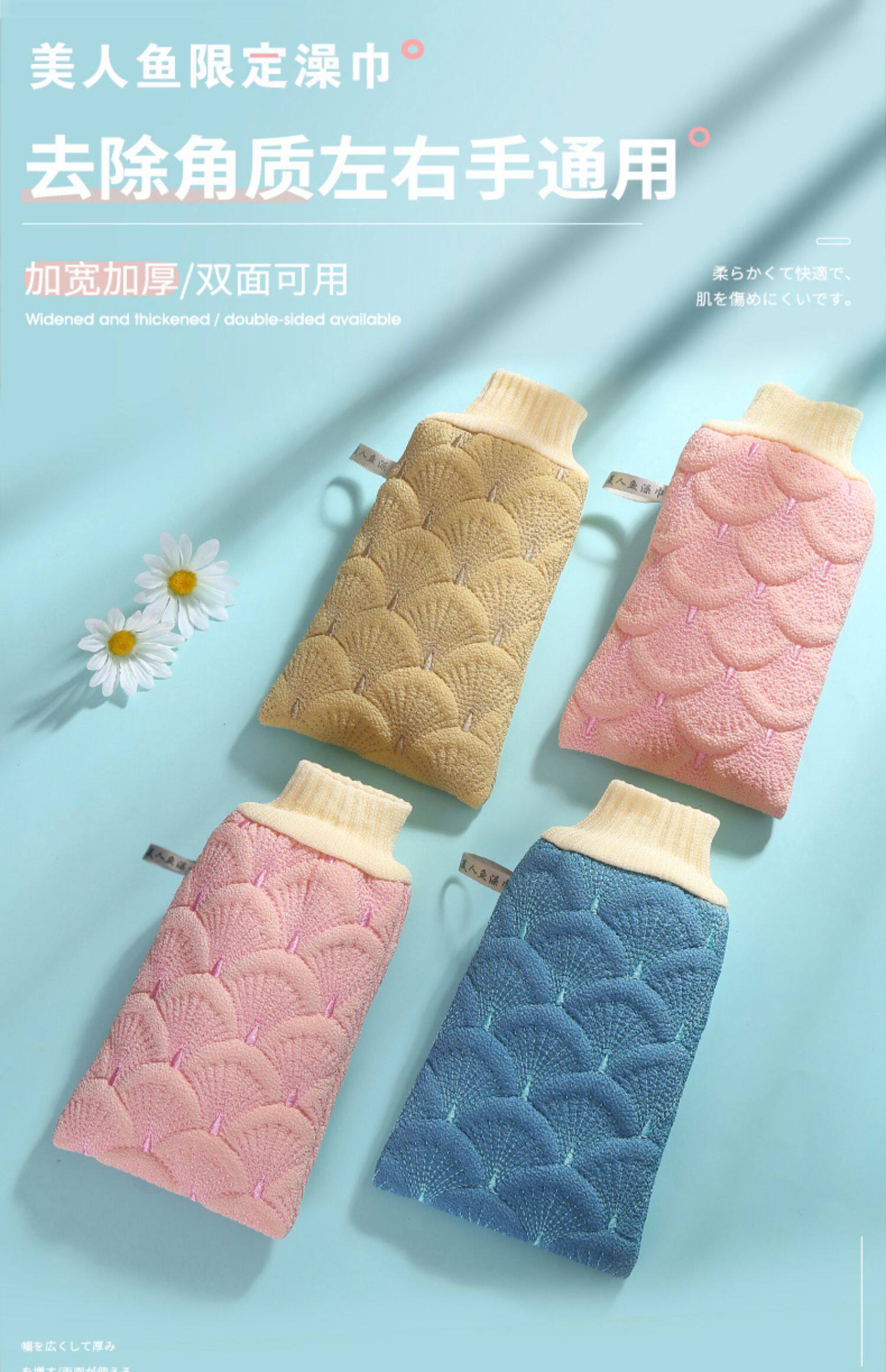 Русалочка потирает дом для полотенца для ванны с сильной спиной, мужчины потирают грязевые перчатки, полотенца для ванн, не повредят артефакты ванны