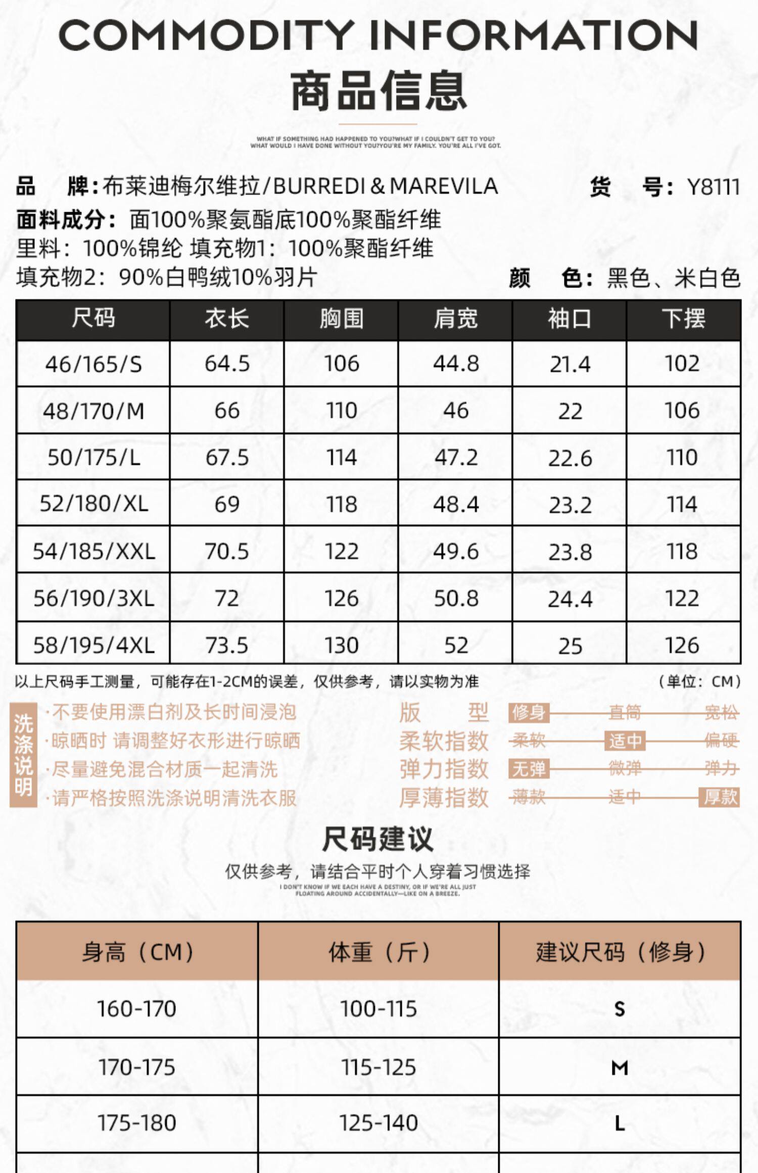 | Размер: | 46/S/165, 48/M/170, 50/L/175, 52/XL/180, 54/XXL/185, 56/XXXL/190, 58/XXXXL/195, Пожалуйста, проконсультируйтесь с обслуживанием клиентов для точного кода |