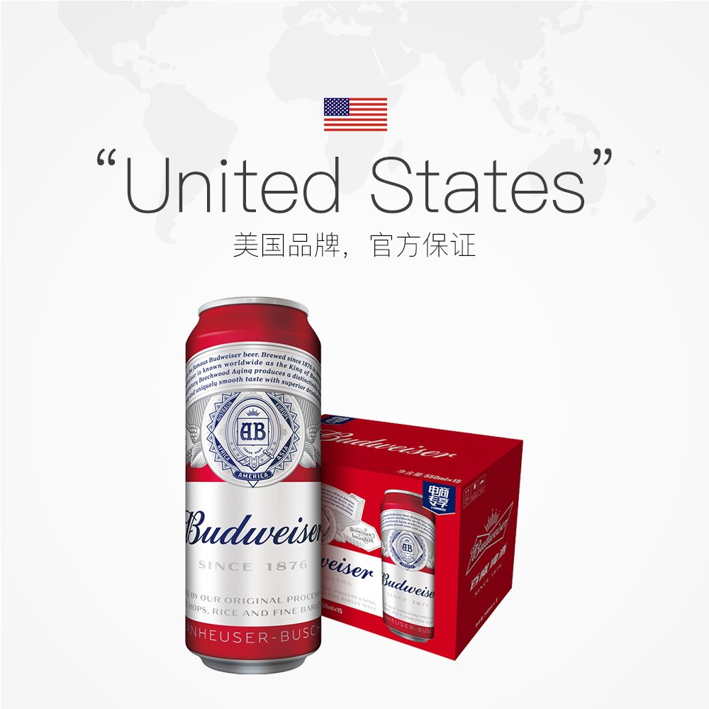 Budweiser/百威 Пивная коробка классический алкоголь 550 мл*15 банок алюминиевых танков [Live]