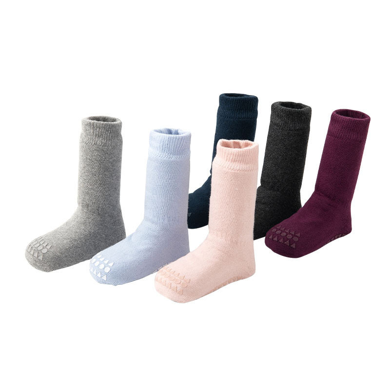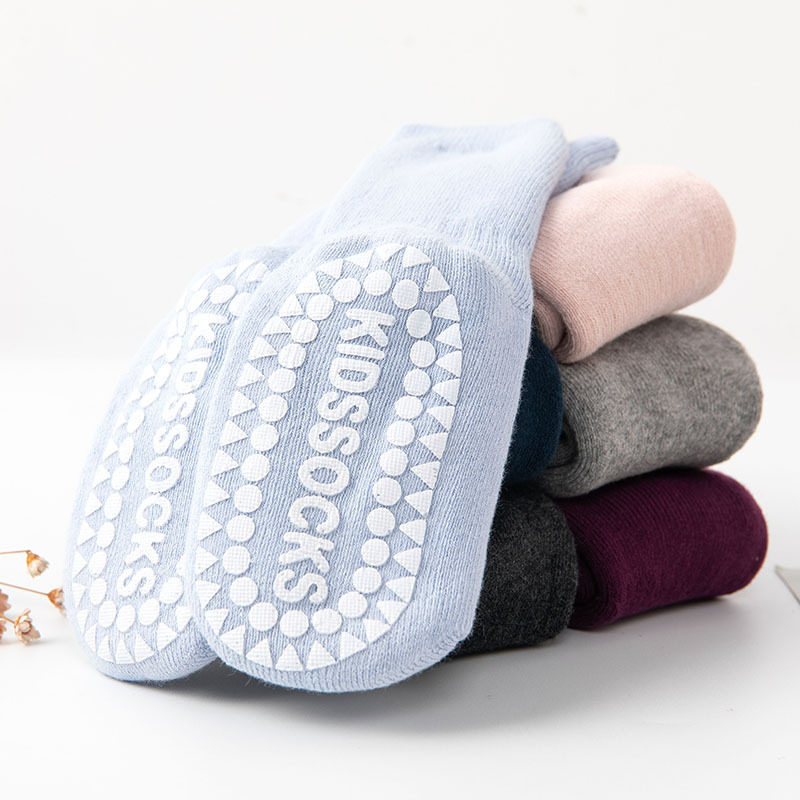 Корейская версия новой осени и зимней двойной ленты, клейкие дети, плюс бархатные толстые носки круговые круги чистый цвет милые дети носки пола