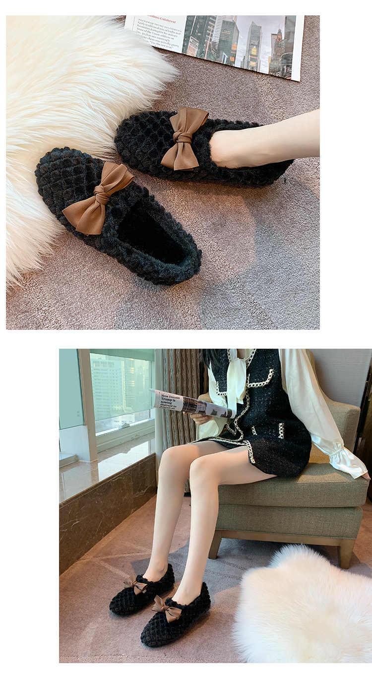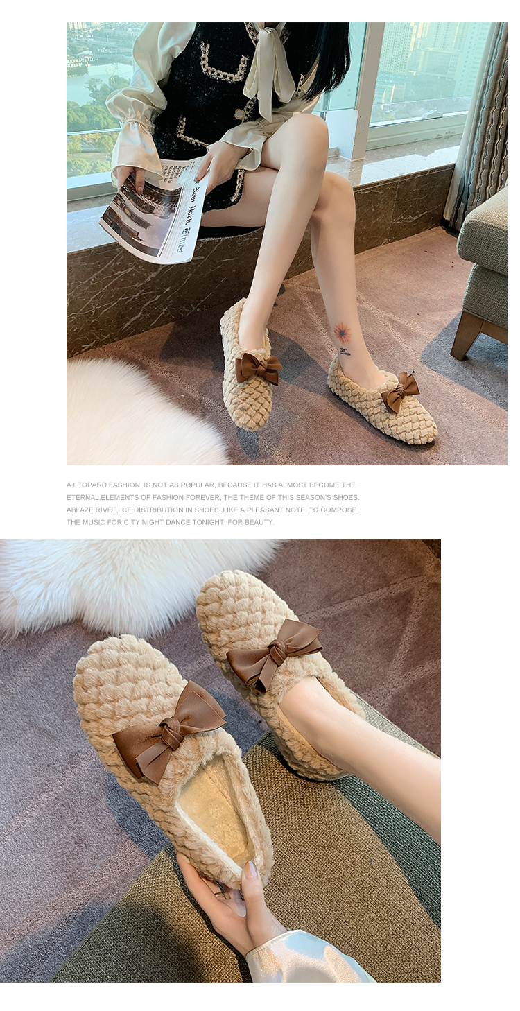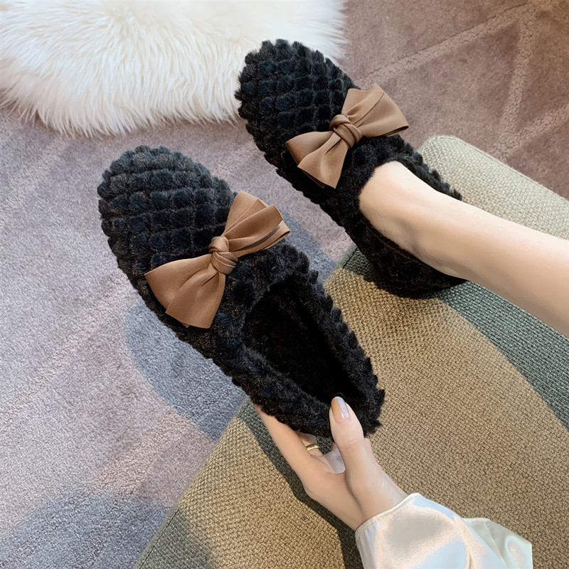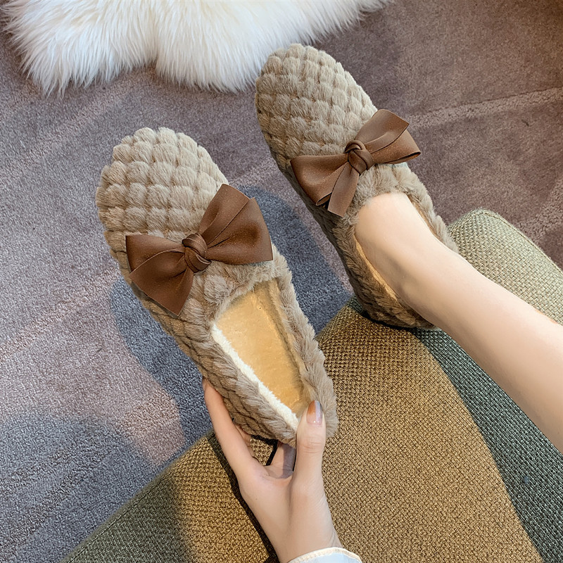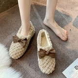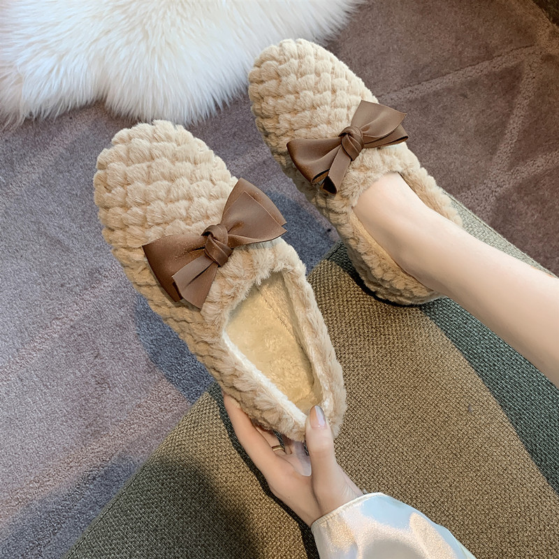 Зимняя обувь, демисезонные флисовые туфли с бантиком, в корейском стиле