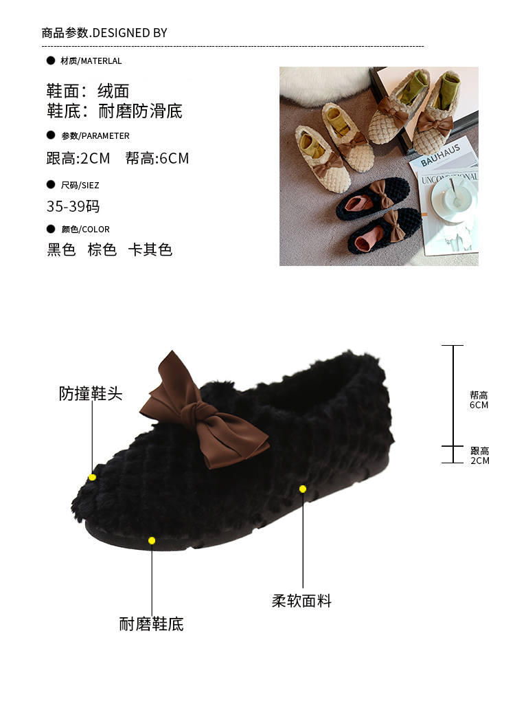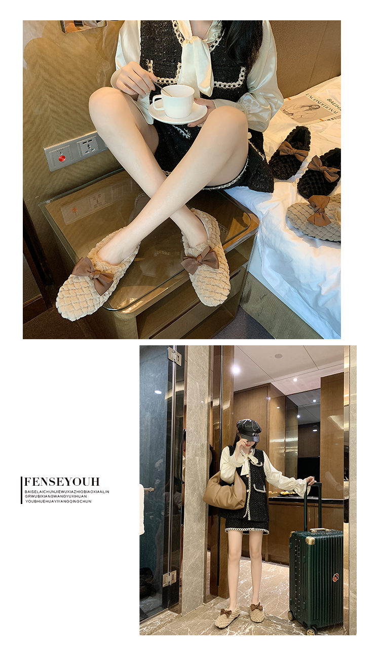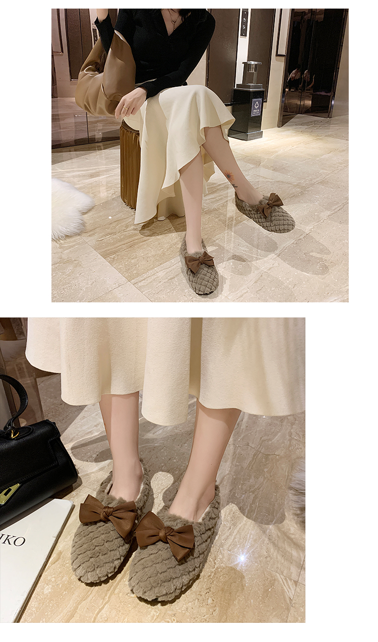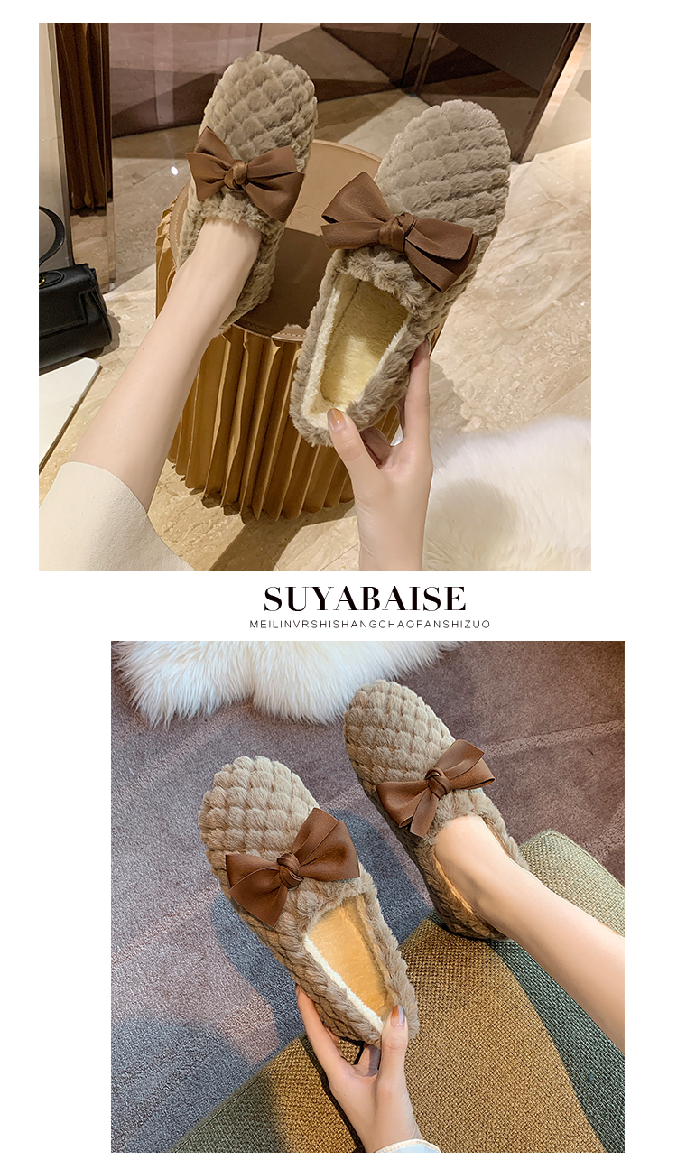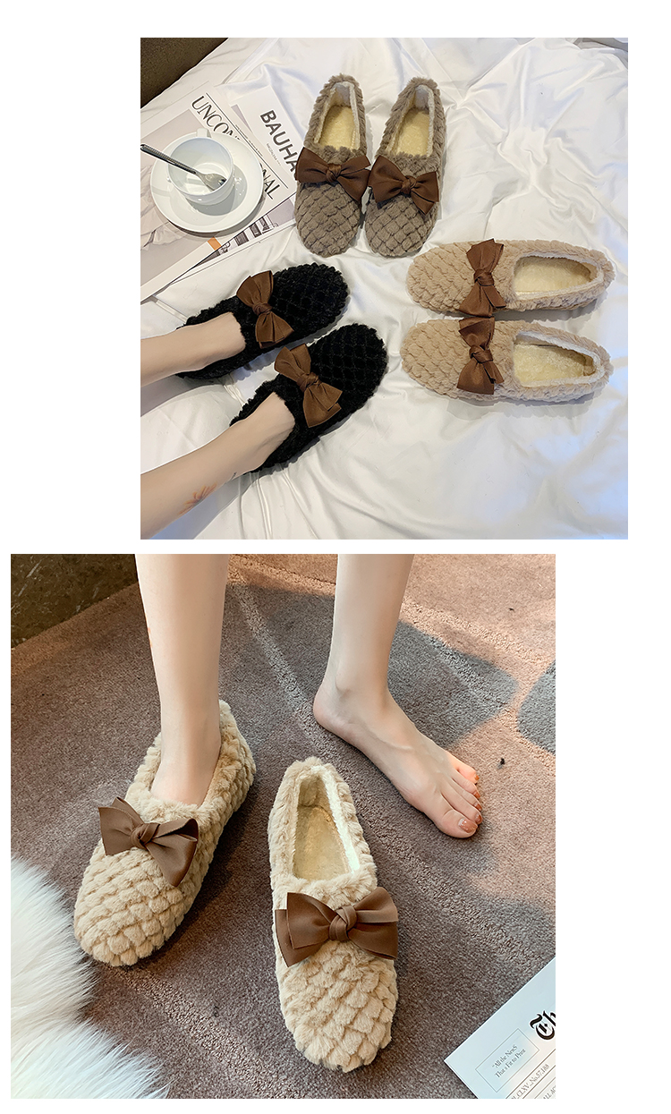 Зимняя обувь, демисезонные флисовые туфли с бантиком, в корейском стиле
