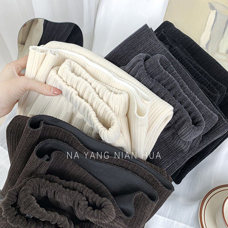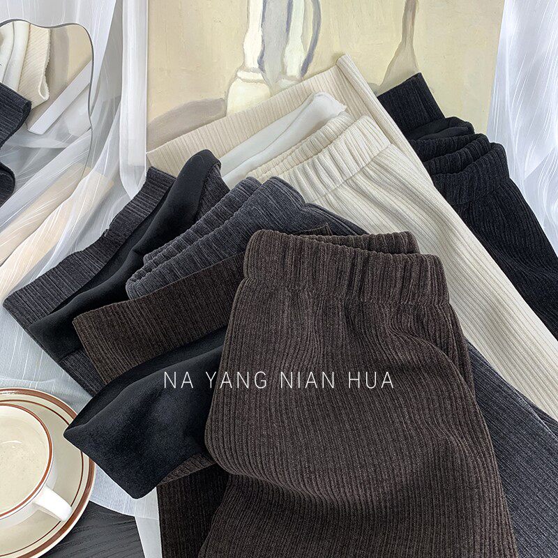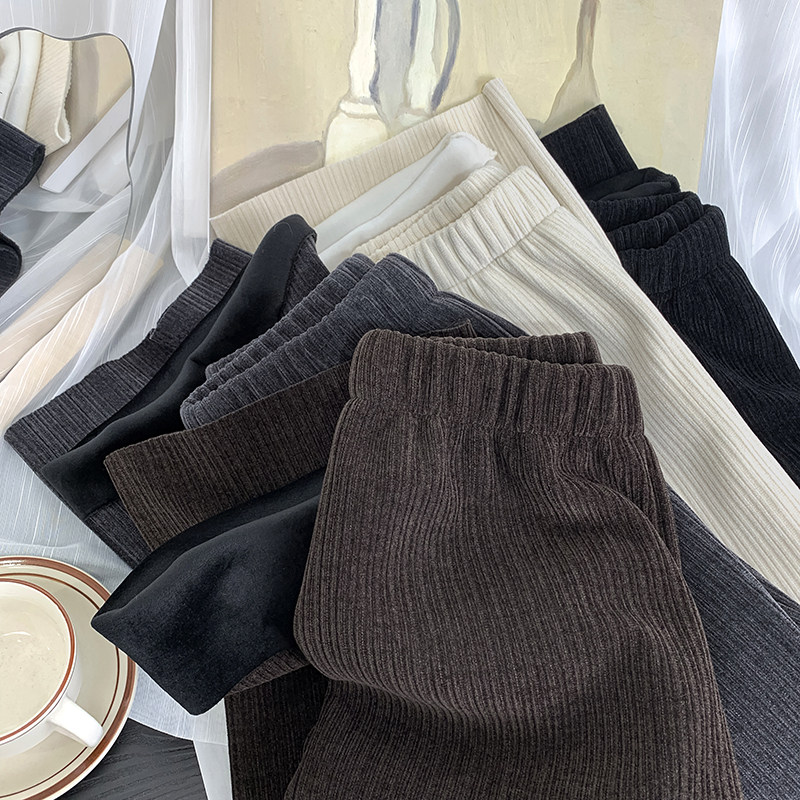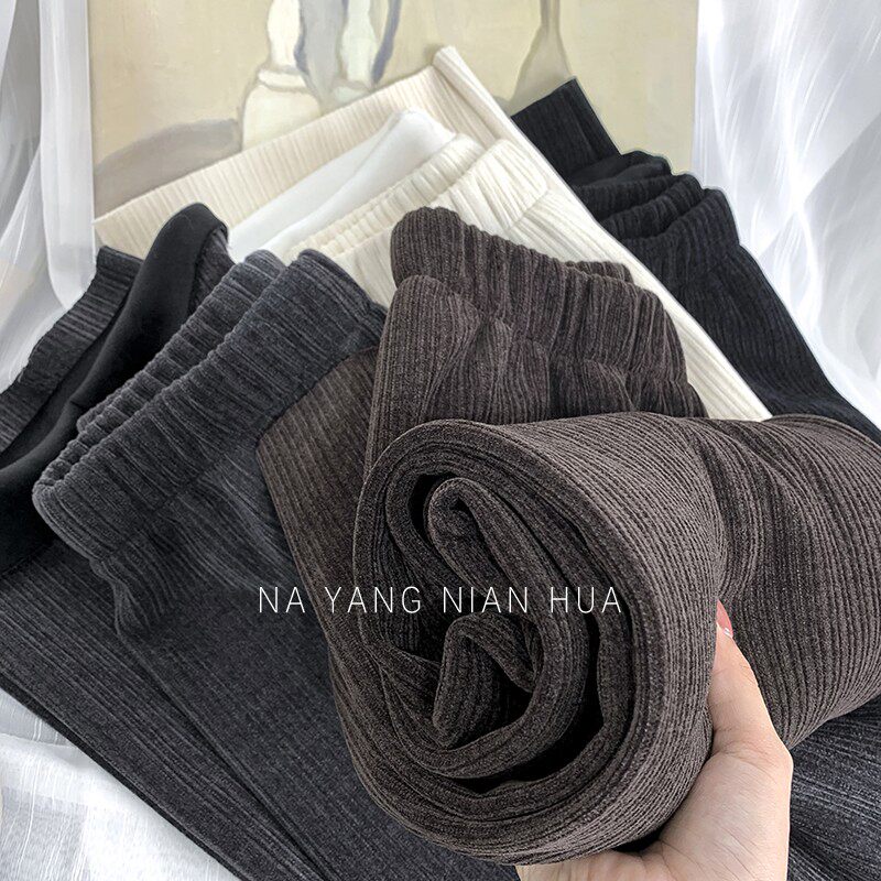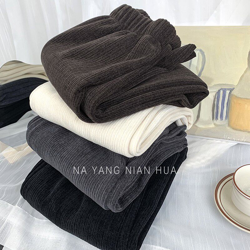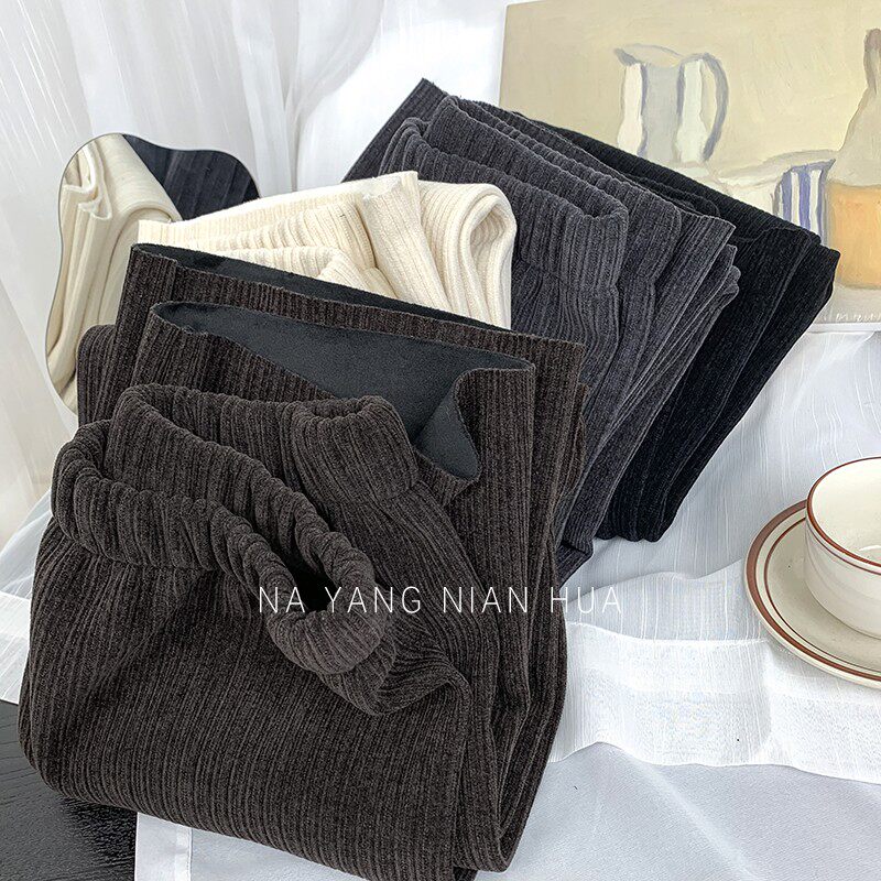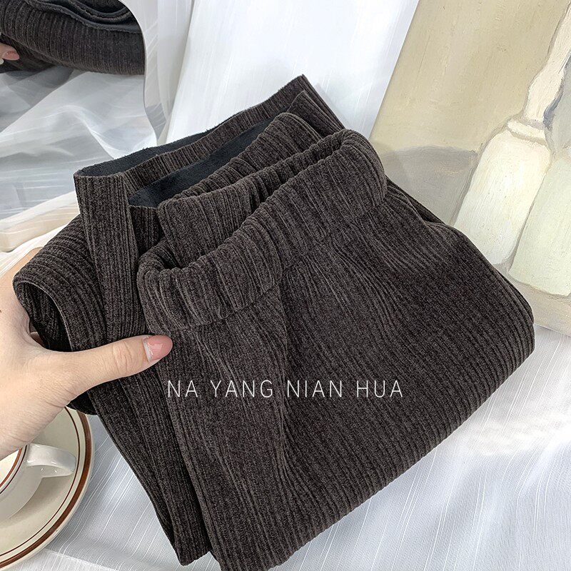 Приталенные флисовые демисезонные штаны, вельветовые леггинсы, повседневные брюки, высокая талия, оверсайз, свободный прямой крой