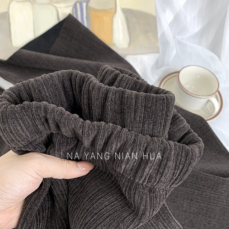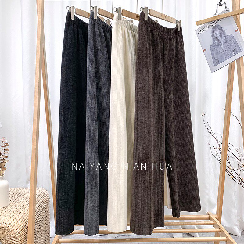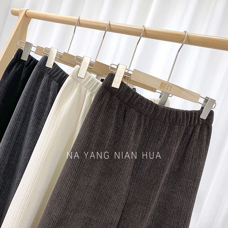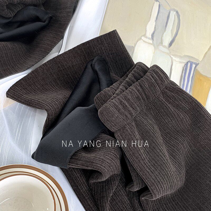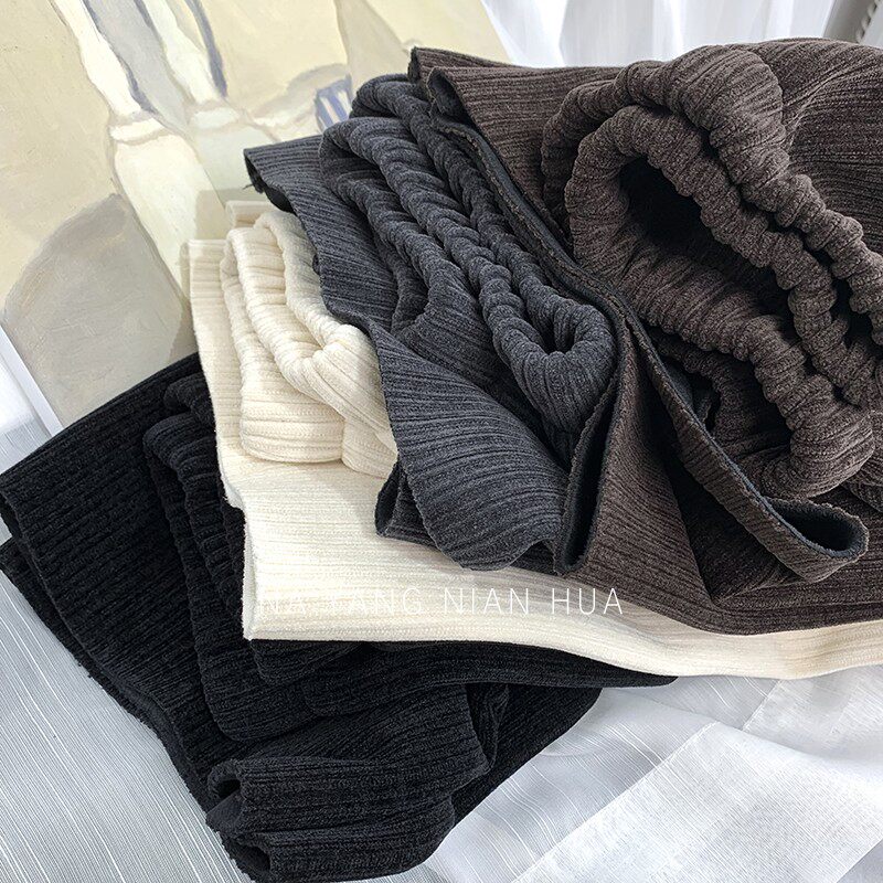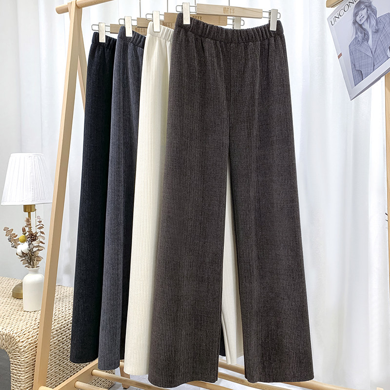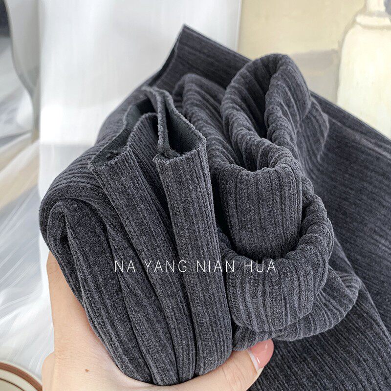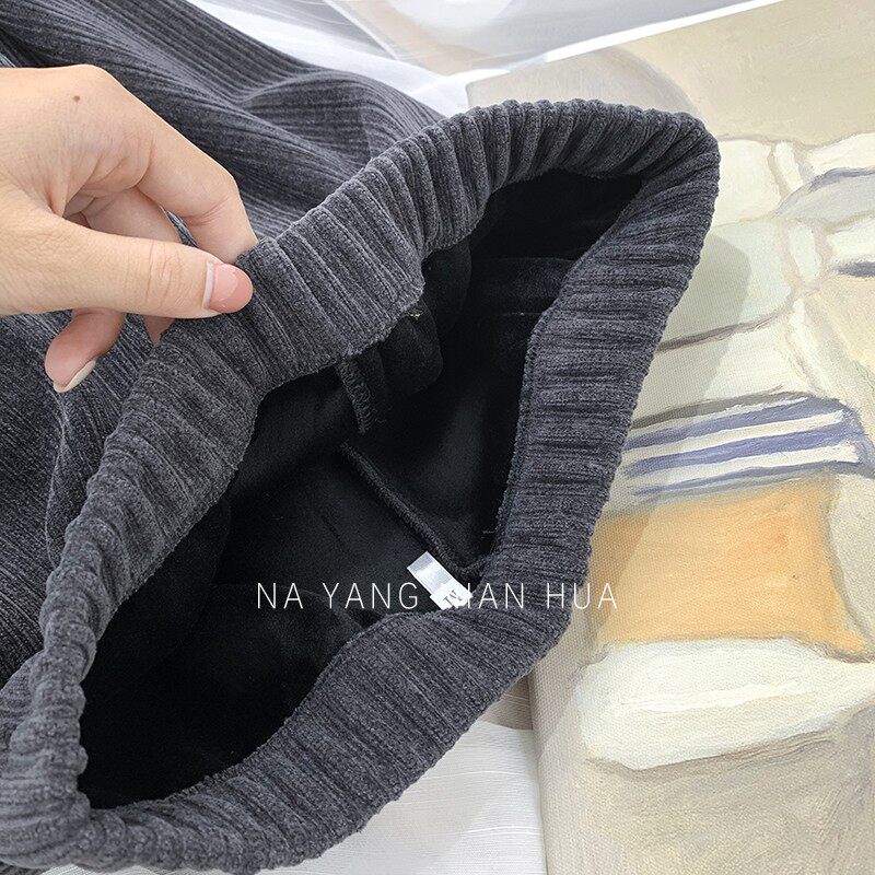Приталенные флисовые демисезонные штаны, вельветовые леггинсы, повседневные брюки, высокая талия, оверсайз, свободный прямой крой