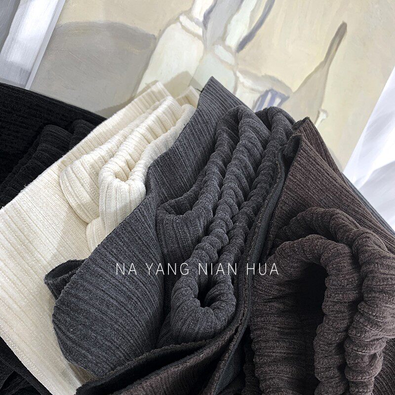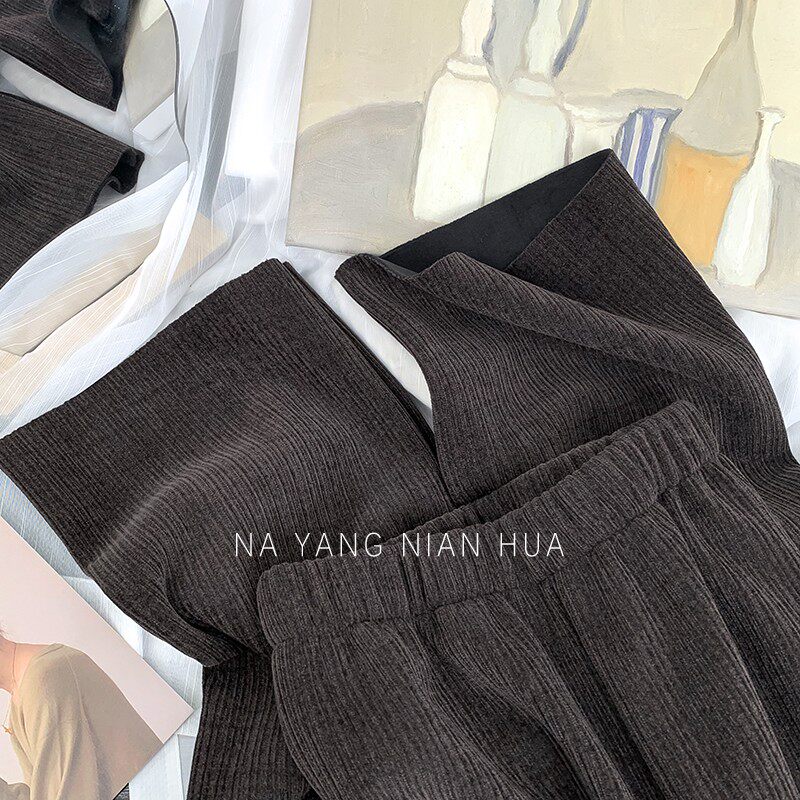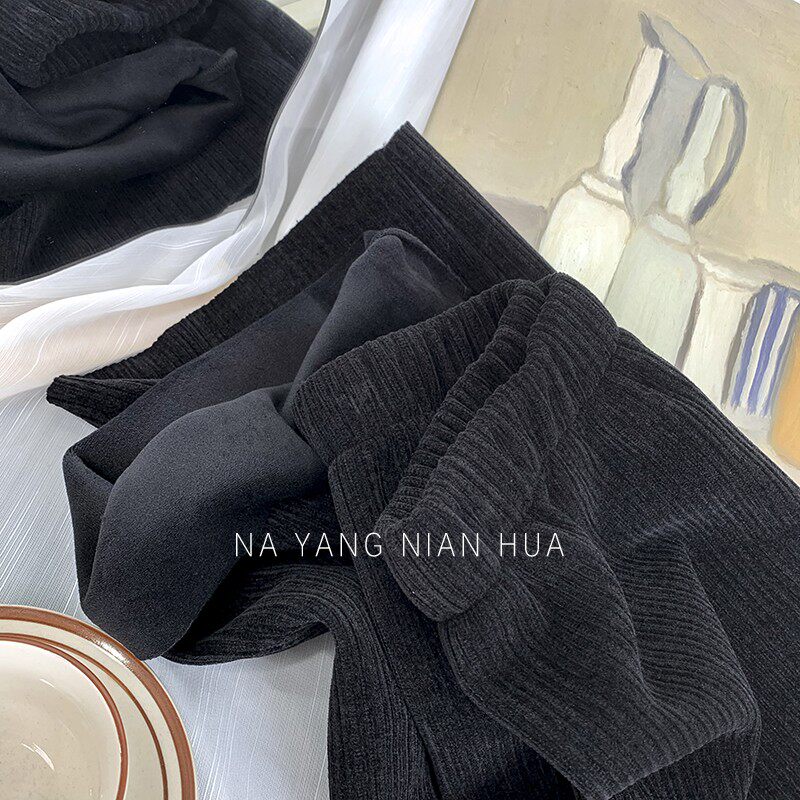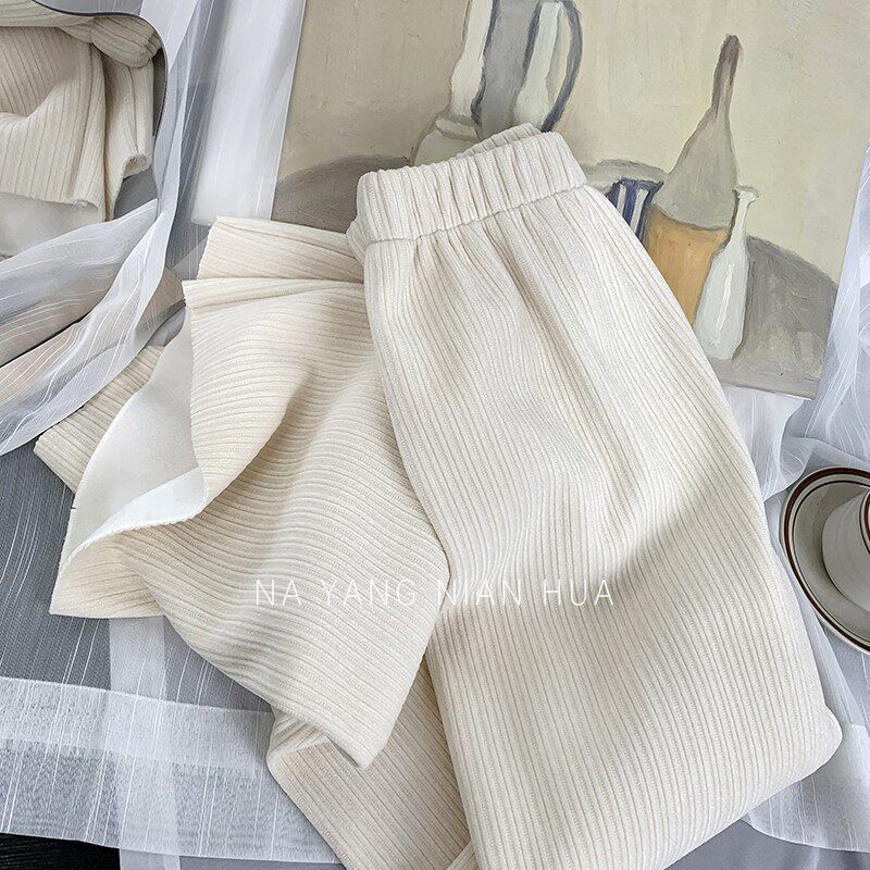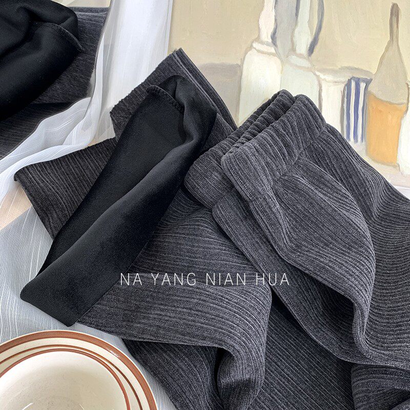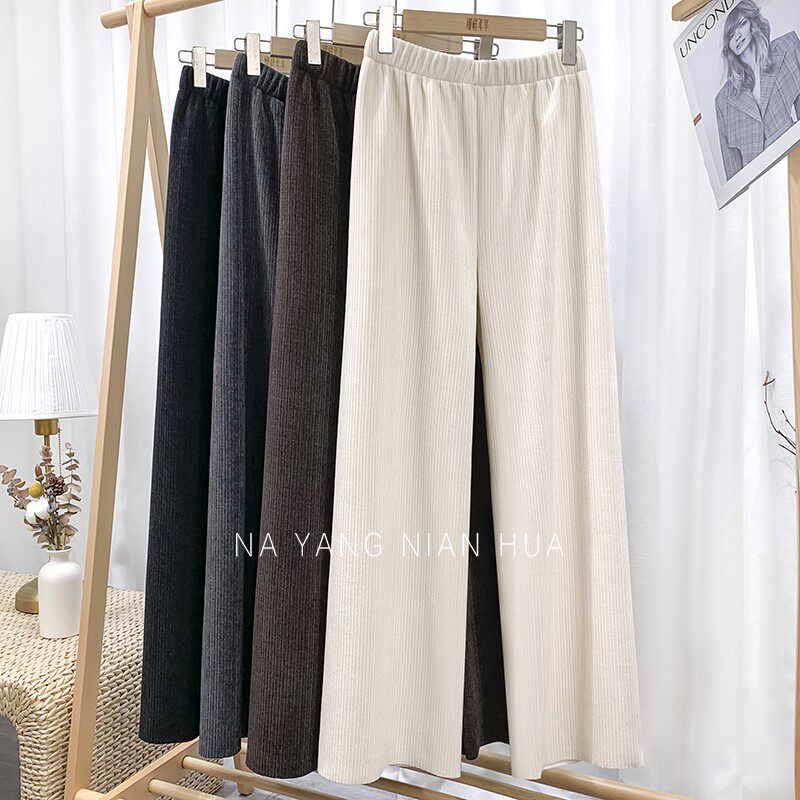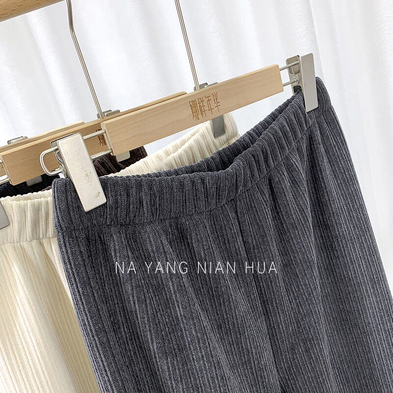 Приталенные флисовые демисезонные штаны, вельветовые леггинсы, повседневные брюки, высокая талия, оверсайз, свободный прямой крой