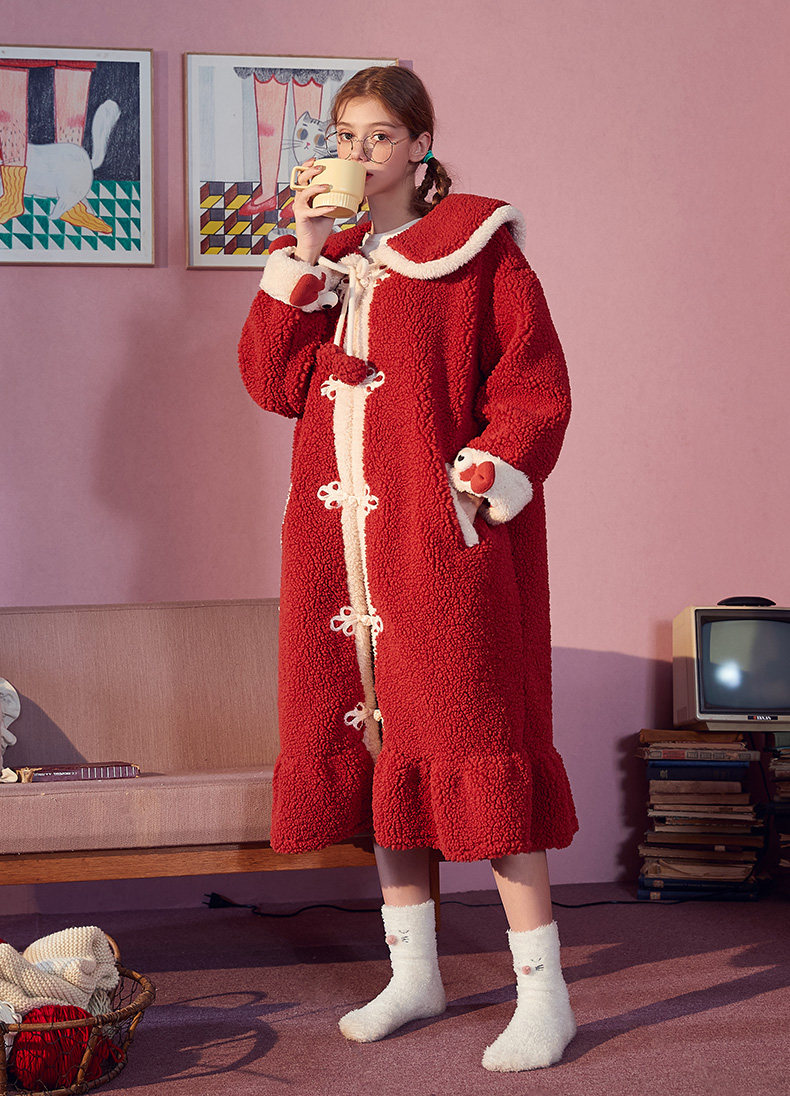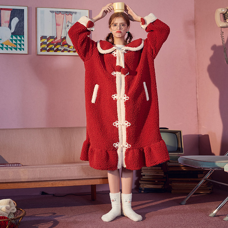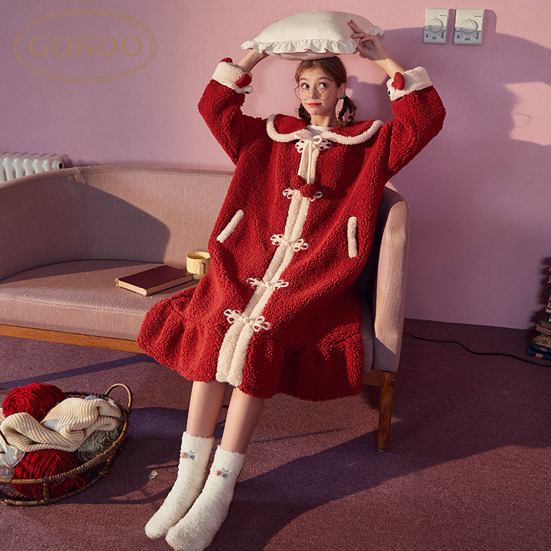 Gukoo/果壳 Демисезонная коралловая пижама, бархатный банный халат для отдыха