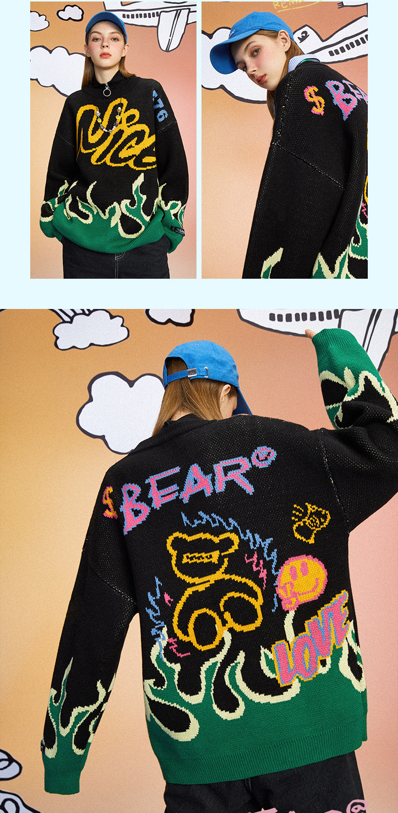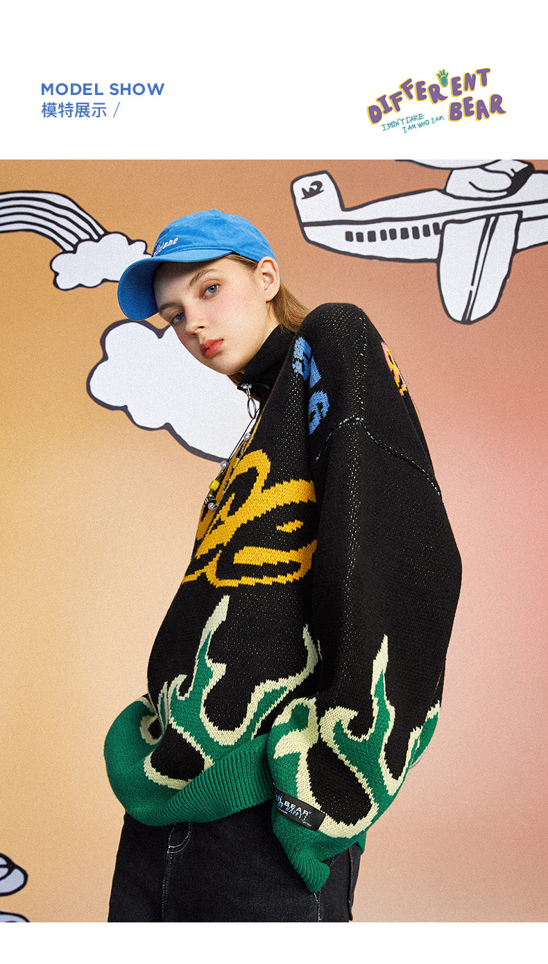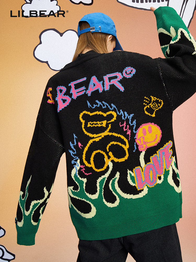Мультяшный мужской трендовый трикотажный свитер, с медвежатами, в корейском стиле