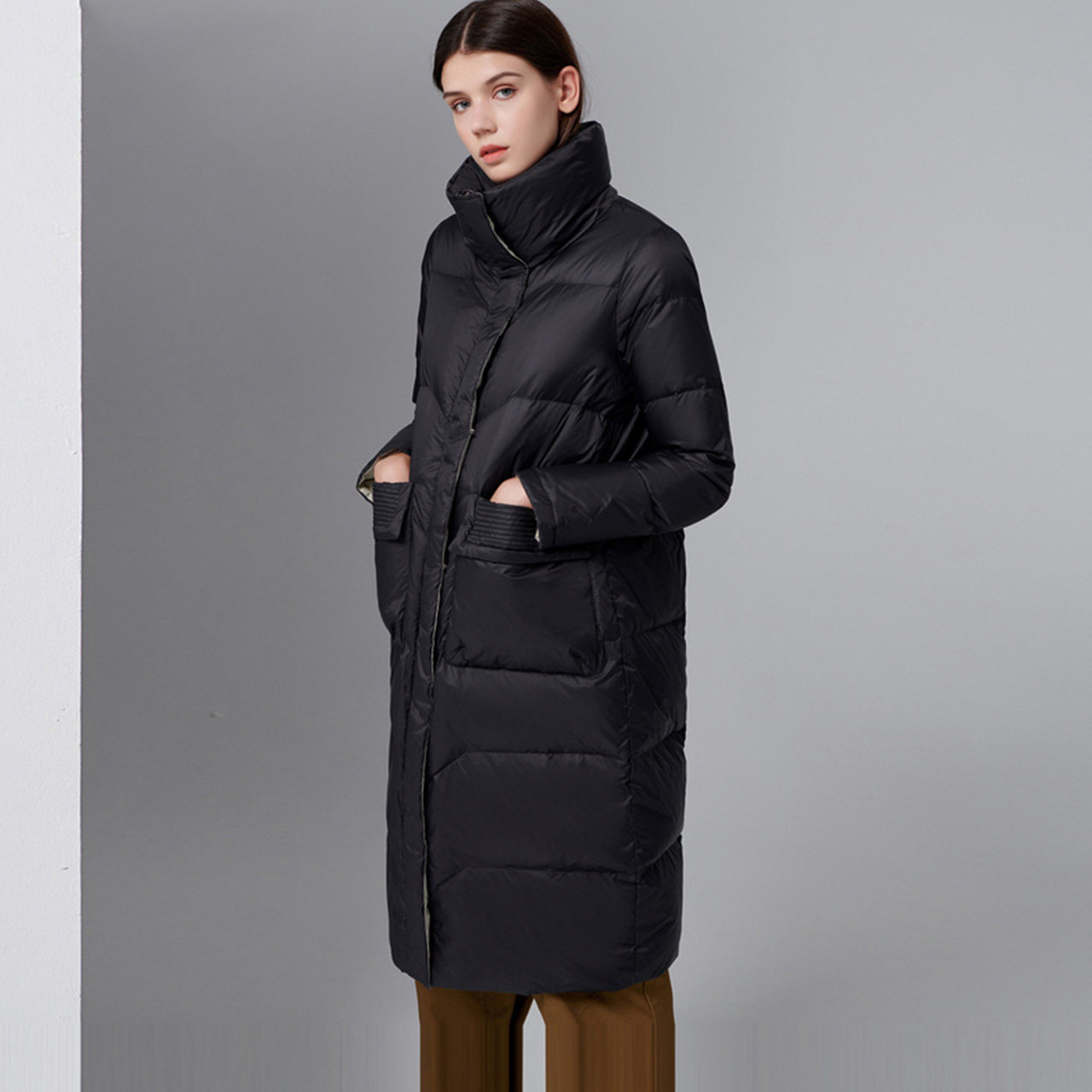 Демисезонный удерживающий тепло длинный трендовый пуховик, коллекция 2021, длина макси