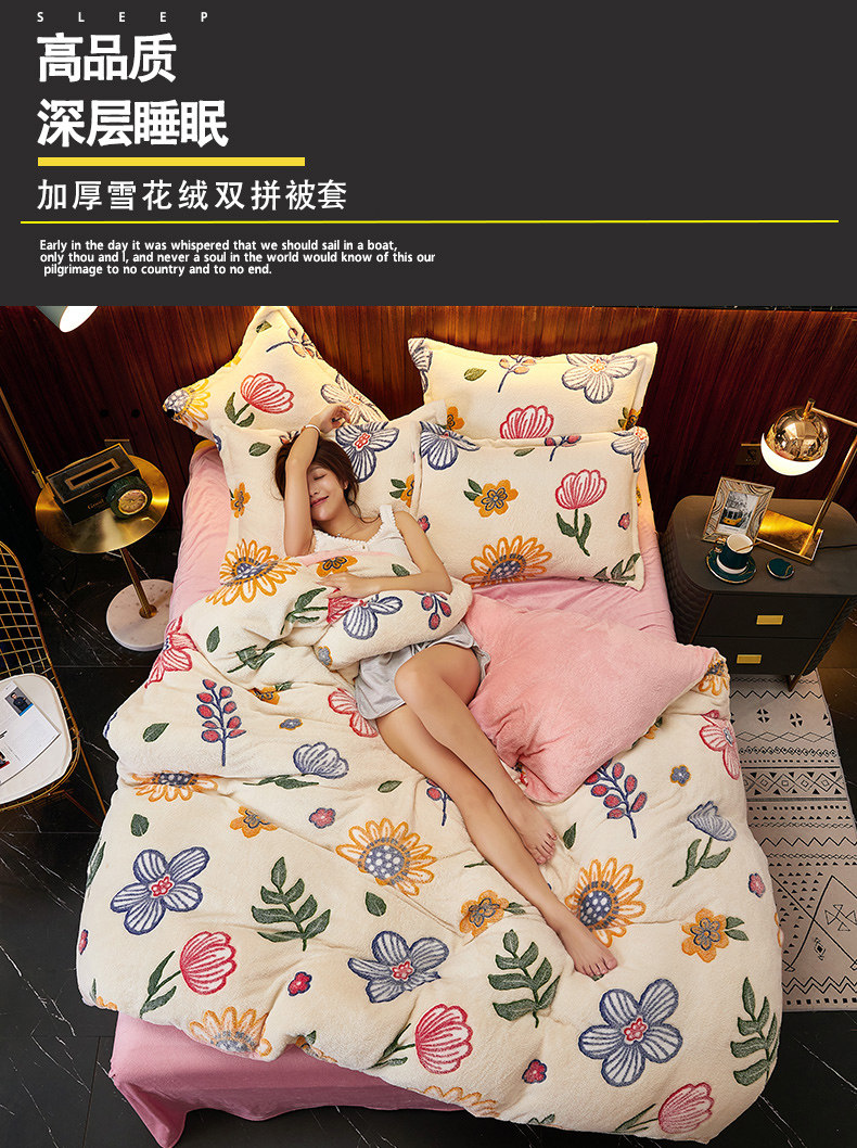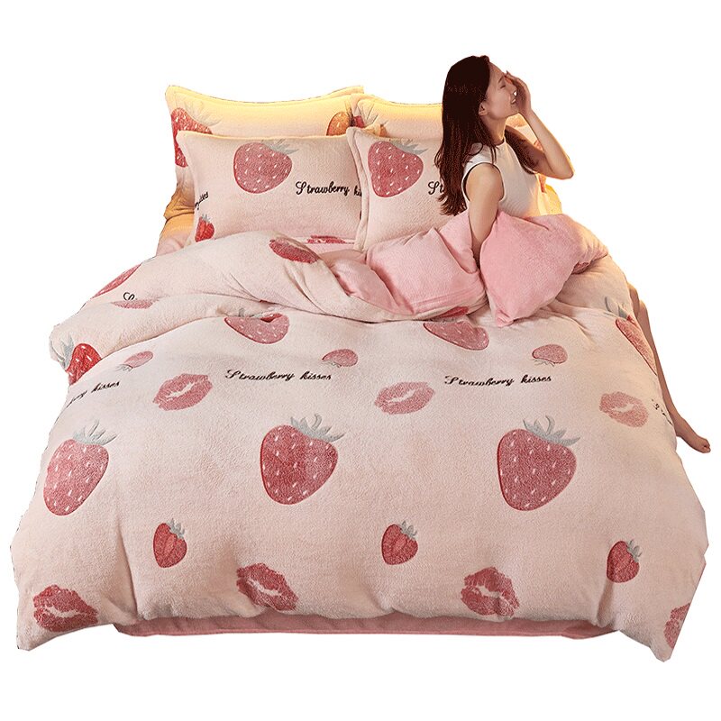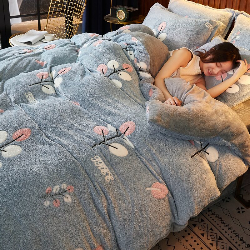Удерживающий тепло коралловый комплект, двусторонное покрывало, пододеяльник, простыня, 4 предмета, увеличенная толщина