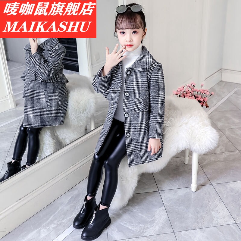 Демисезонный пуховик, длинное детское зимнее шерстяное пальто, 2020, в корейском стиле, в западном стиле, средней длины