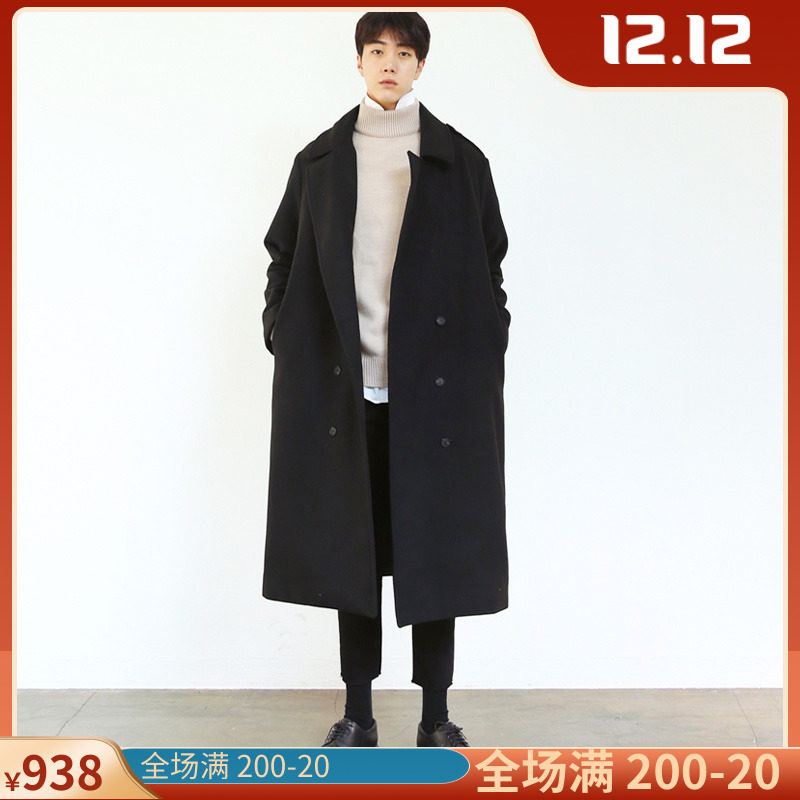 Длинное шерстяное пальто для мальчиков, кашемировая демисезонная куртка, свободный крой, в корейском стиле