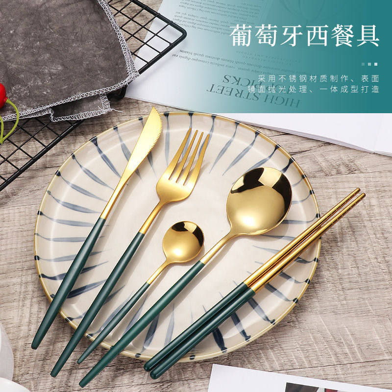 Брендовая ложка из нержавеющей стали, палочки для еды, вилка, посуда, комплект для домашнего использования для отеля, 3 предмета