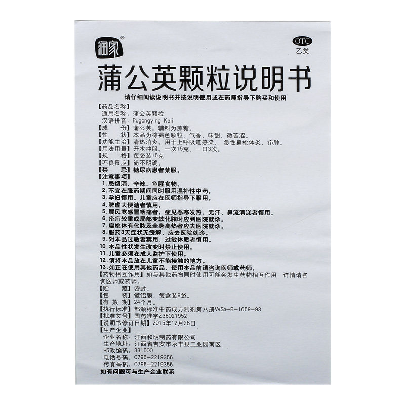 润家 (Медицина) Гранулы одуванчика 15 г*9 мешков/ящик для дыхательных путей инфекция, тепло, анти -инфляция и увеличенные заторы на носовом носе