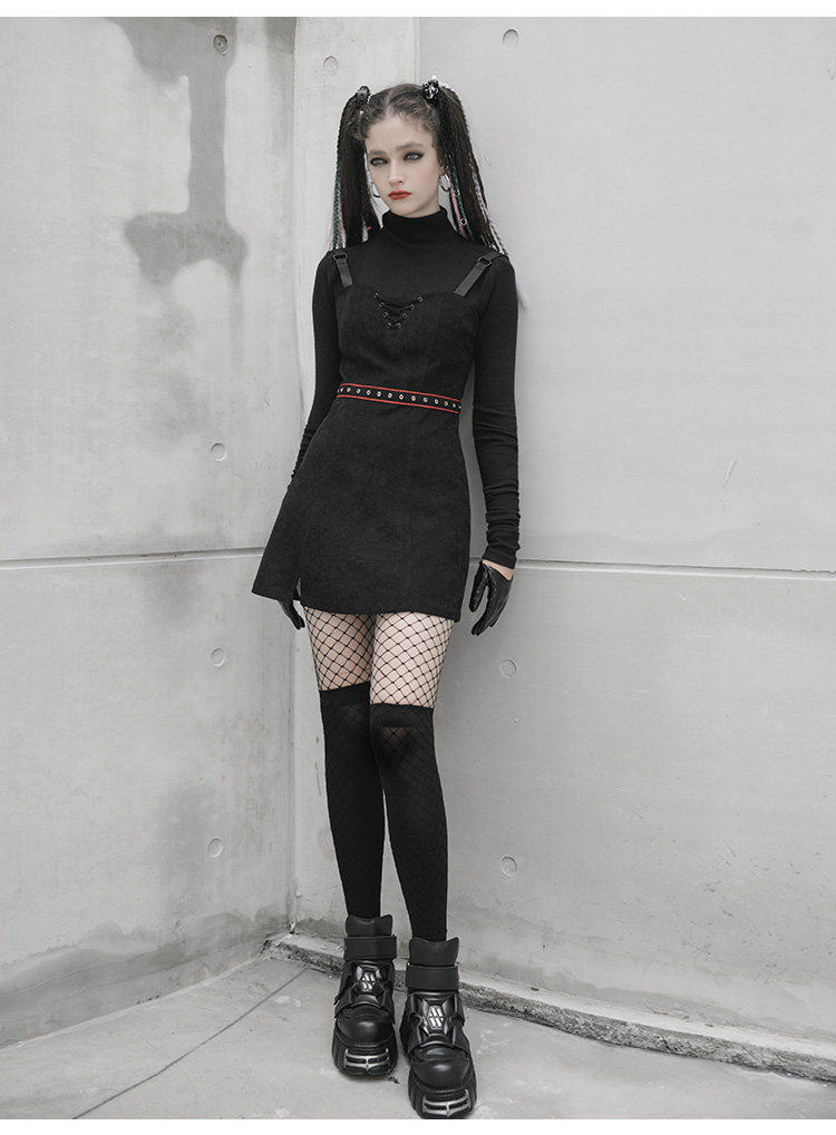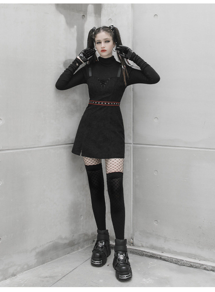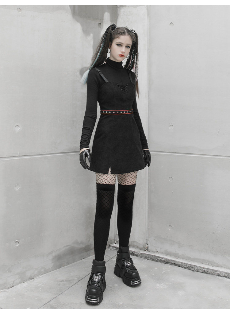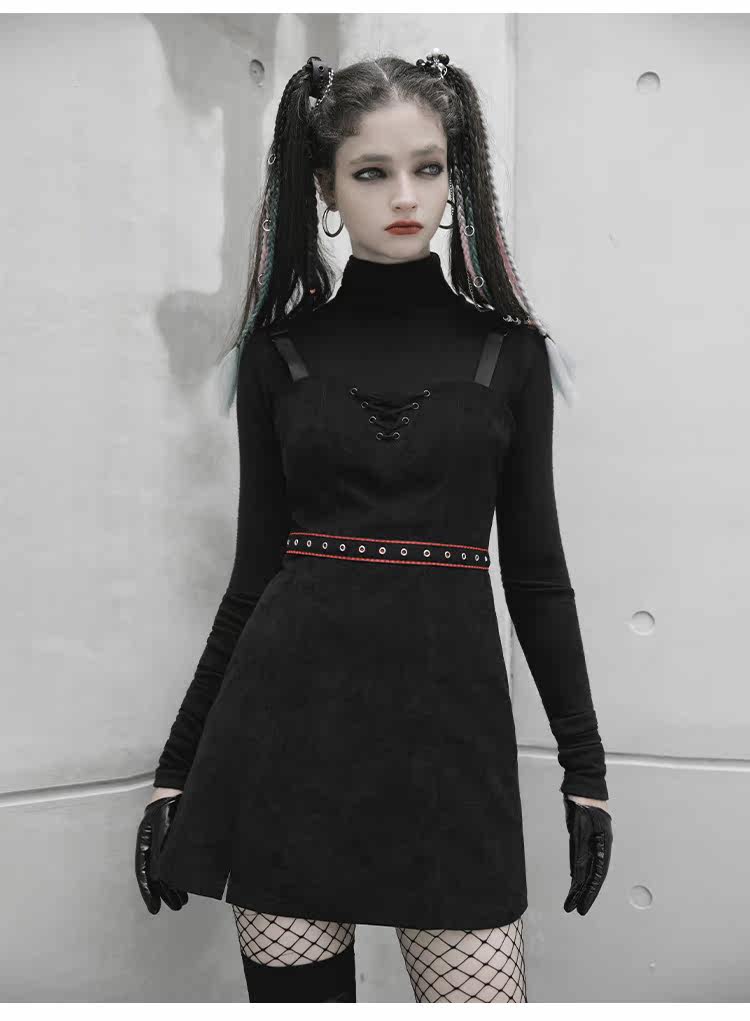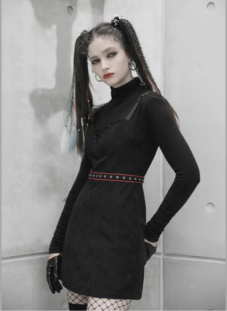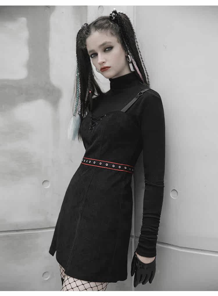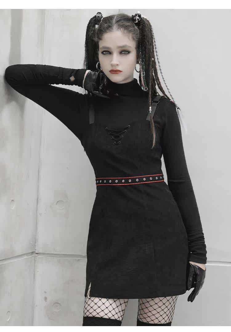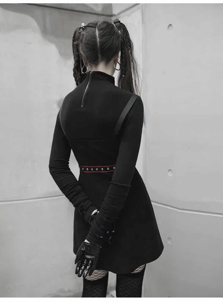 Платье, черная демисезонная мини-юбка, в стиле панк, европейский стиль, популярно в интернете, эффект подтяжки