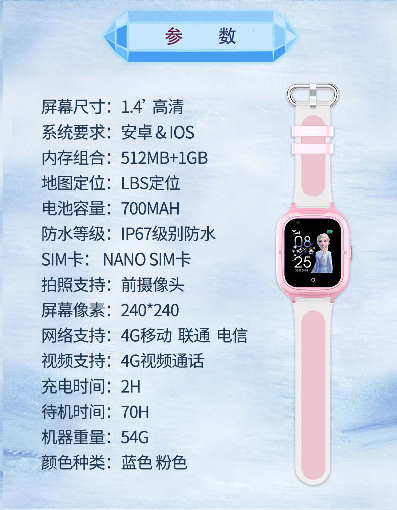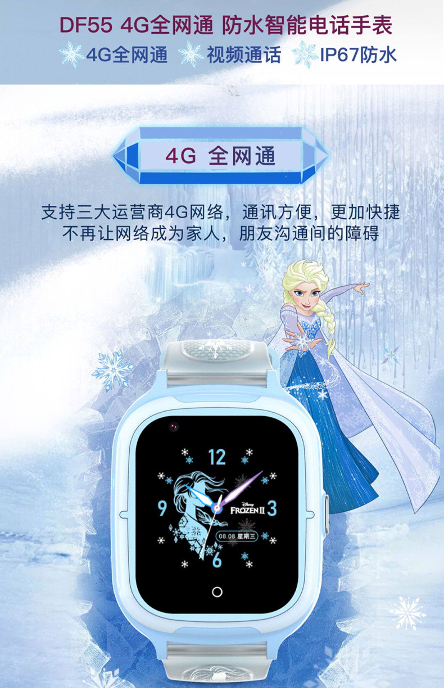 Дисней, есть синхронизация с телефоном, электрические умные часы для школьников, 4G, функция поддержки всех сетевых стандартов связи, «Холодное сердце»