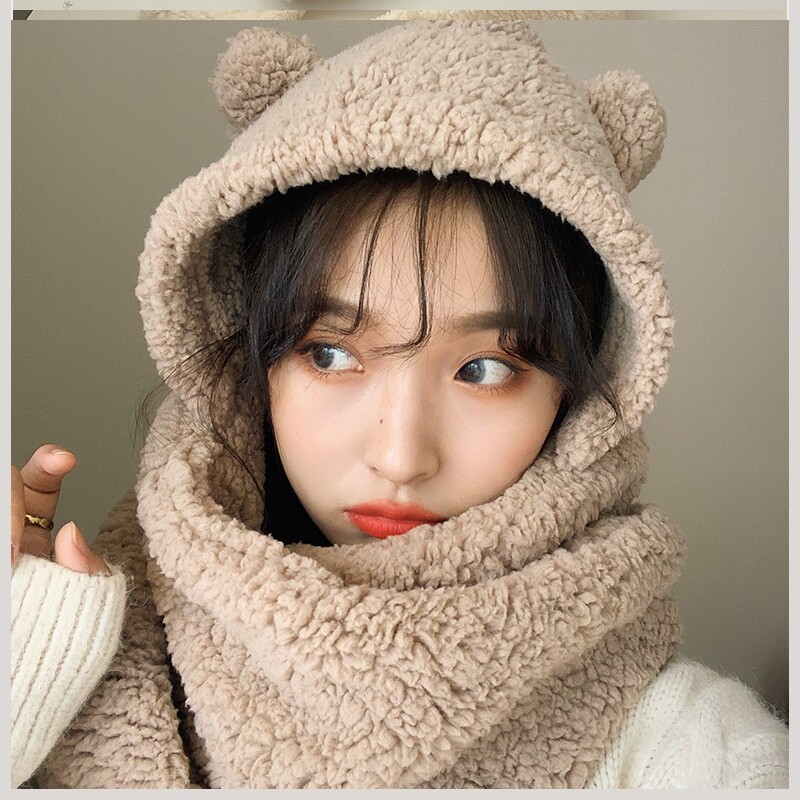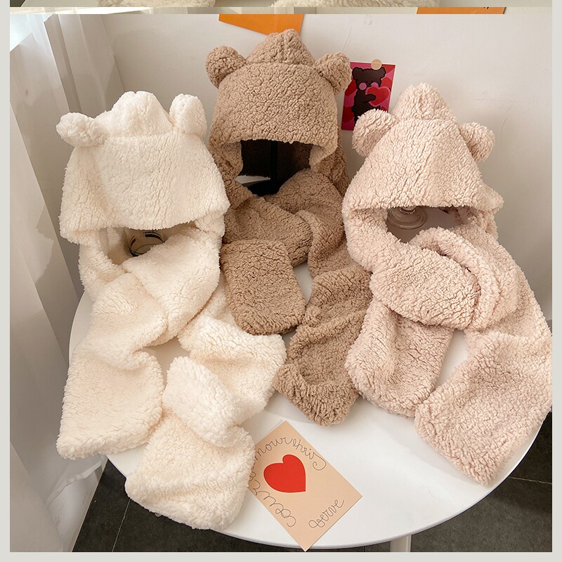 Шапка, зимний универсальный шарф, электромобиль подходит для мужчин и женщин, популярно в интернете, с медвежатами