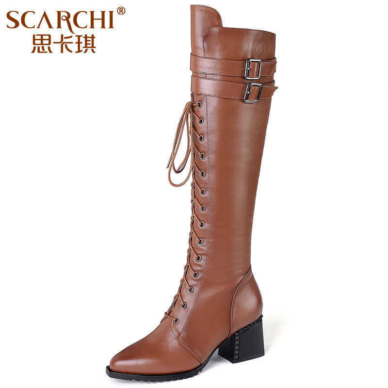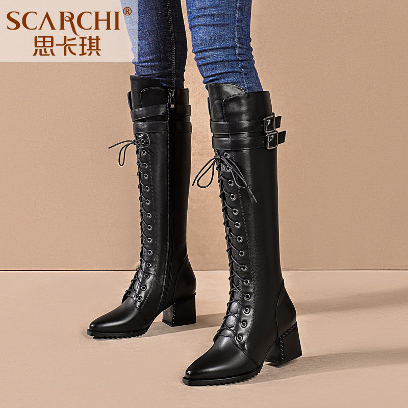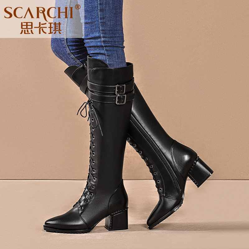 Высокие ботинки, высокие сапоги, демисезонная утепленная обувь с заостренным носом, большой размер