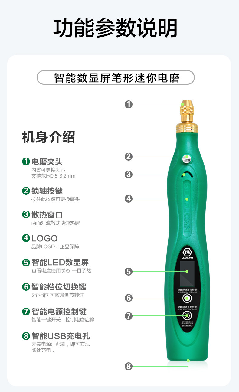 Портативные литиевые батарейки с зарядкой, фрезерный станок для ногтей из нефрита, ткань для полировки, Германия, с LED дисплеем