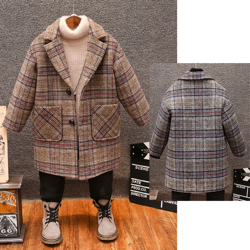 Демисезонное шерстяное пальто для мальчиков, куртка, детский плащ, 2020, в корейском стиле, средней длины, увеличенная толщина, в западном стиле