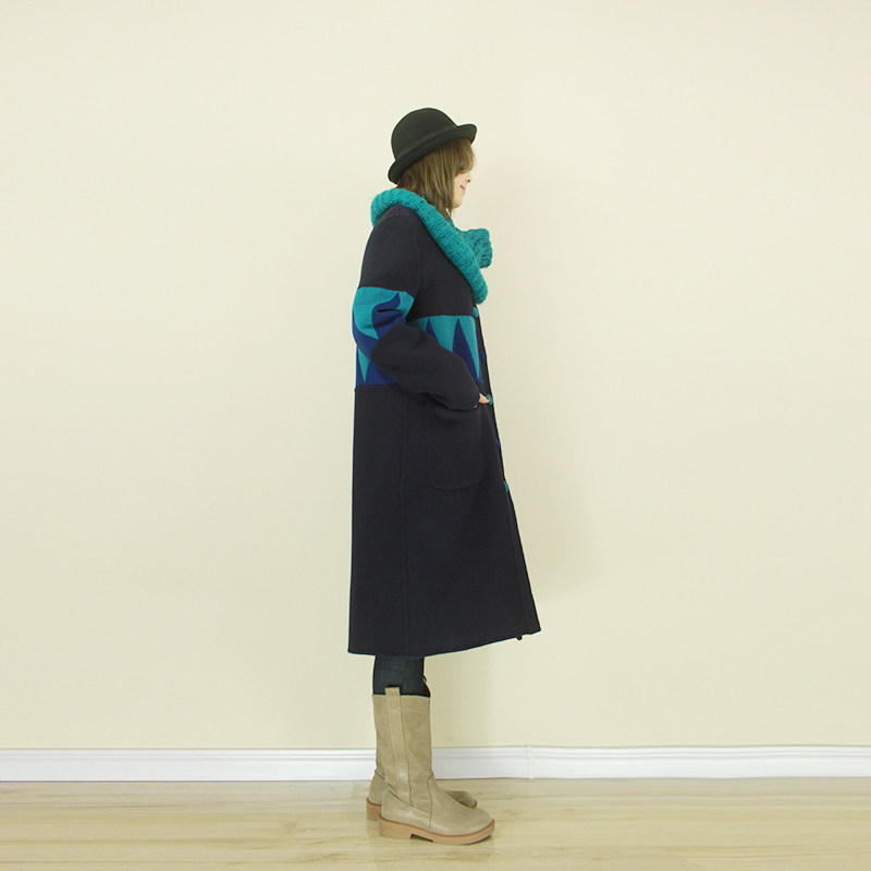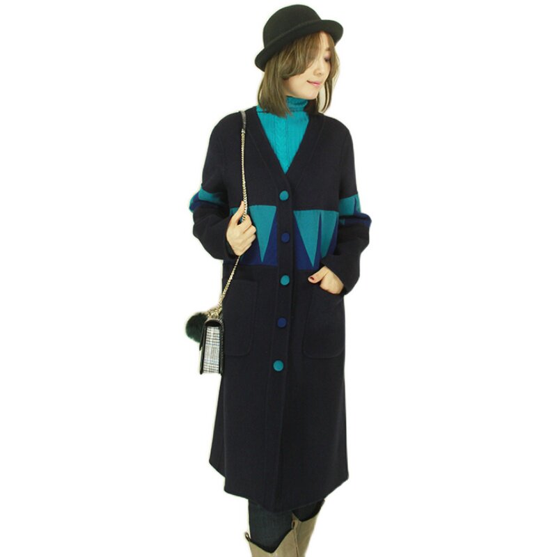 Демисезонная синяя двусторонная кашемировая длинная элитная куртка, средней длины, делается под заказ