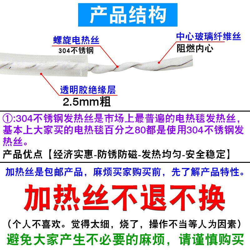 Высококачественный электрический электрический электрический провод, общий электрический матрас спиральный жирный провод Одиночный 12 -метровый двойной 20 -метровый провод