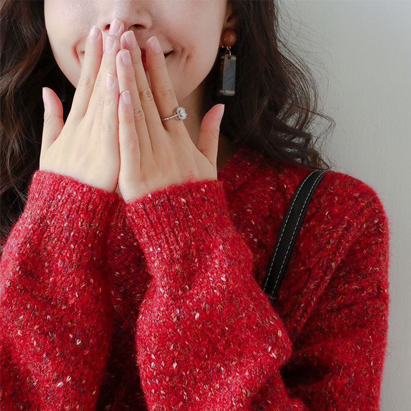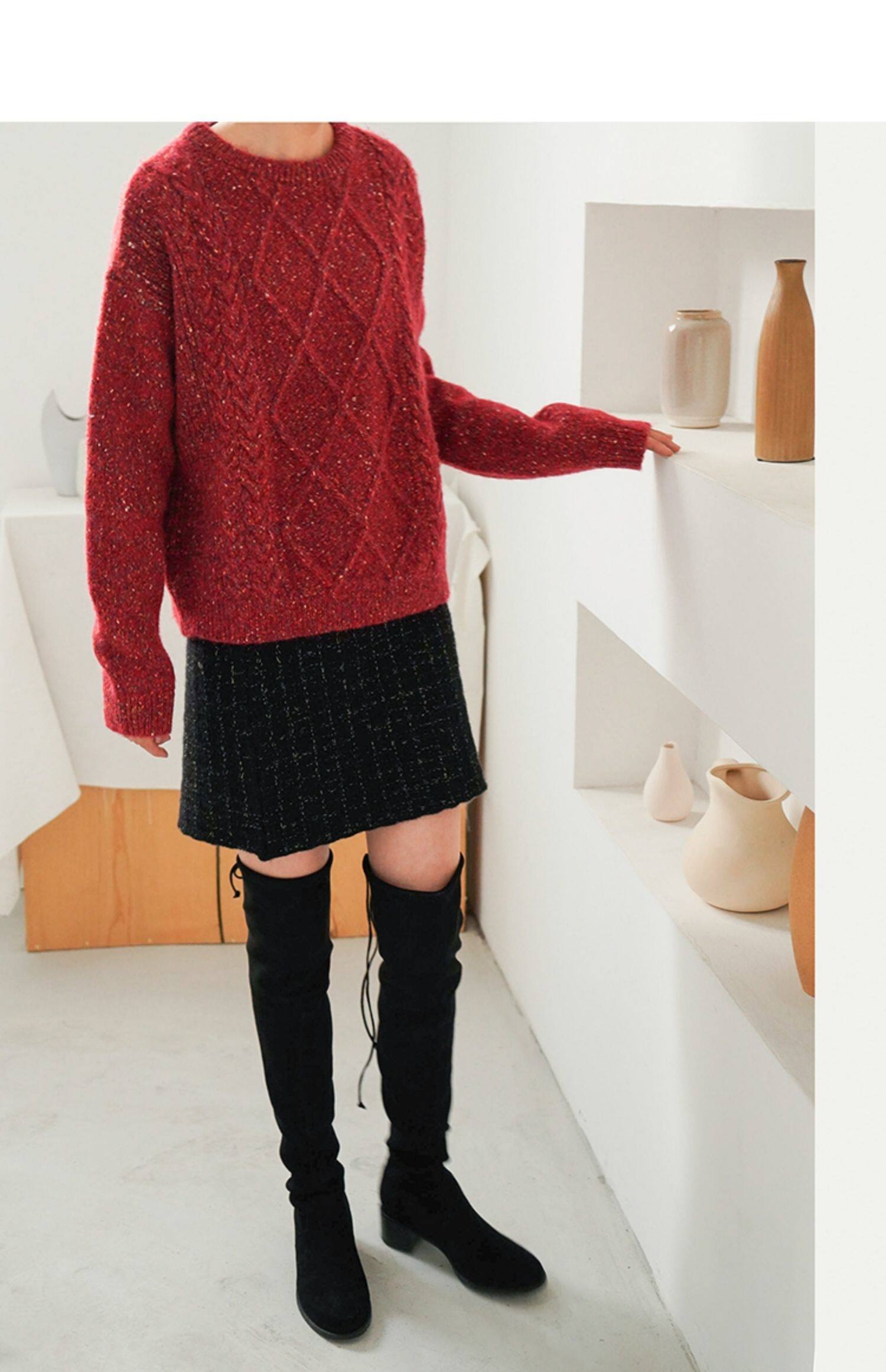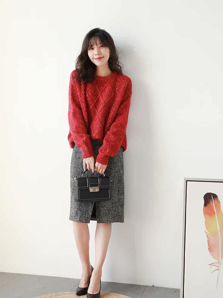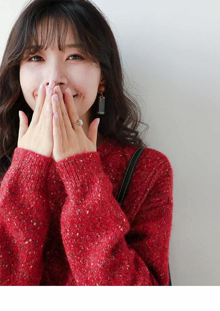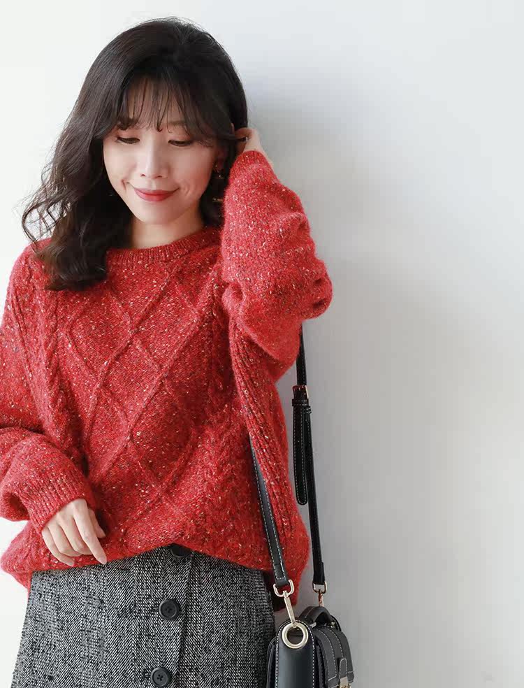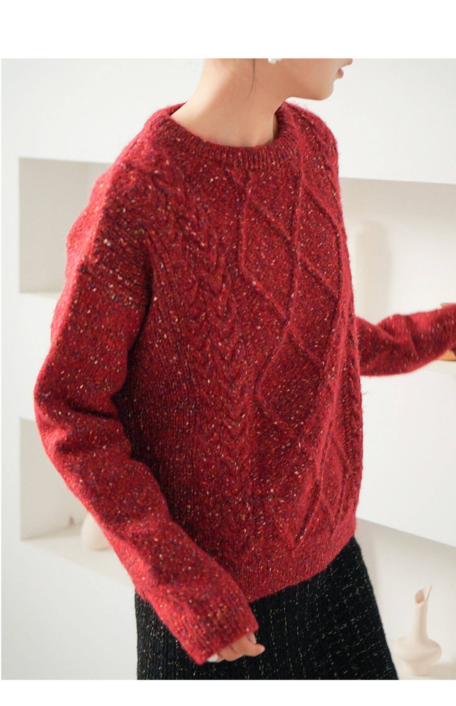 Рождественский красный свитер, утепленное базовое приятное телу демисезонное термобелье, в корейском стиле, оверсайз