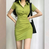 Сексуальное платье, приталенный корсет, рубашка, облегающий крой, короткий рукав, в обтяжку, с акцентом на бедрах
