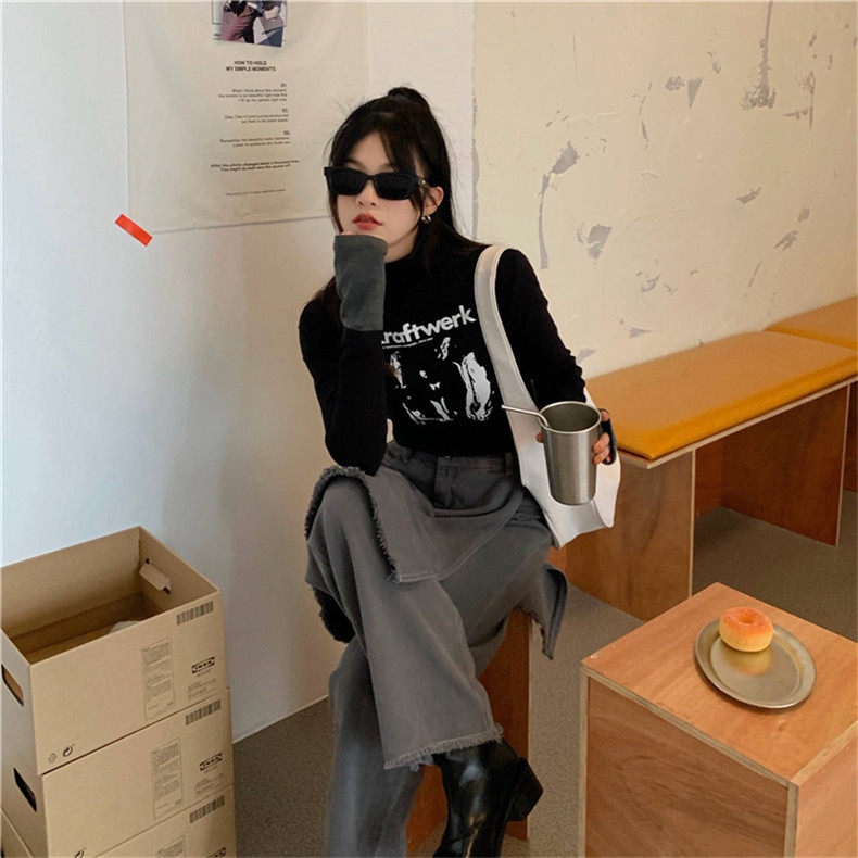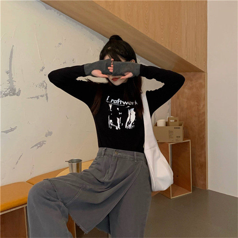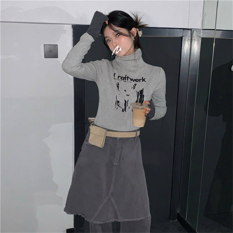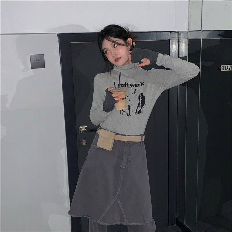 Tide, демисезонная приталенная базовая приятная телу серая цветная футболка, 2020, в корейском стиле, в западном стиле
