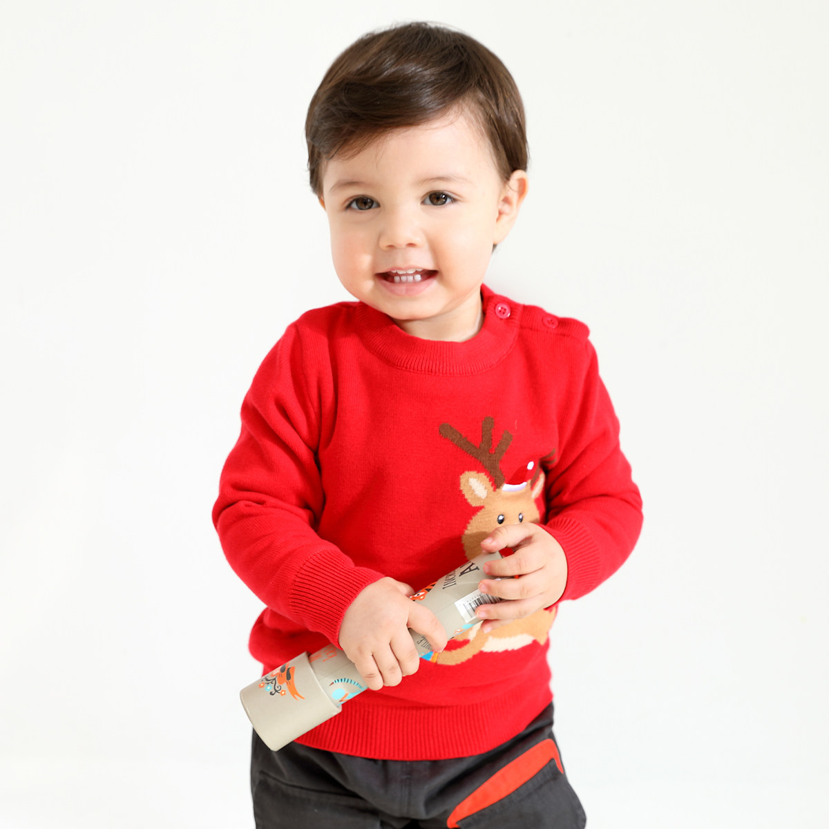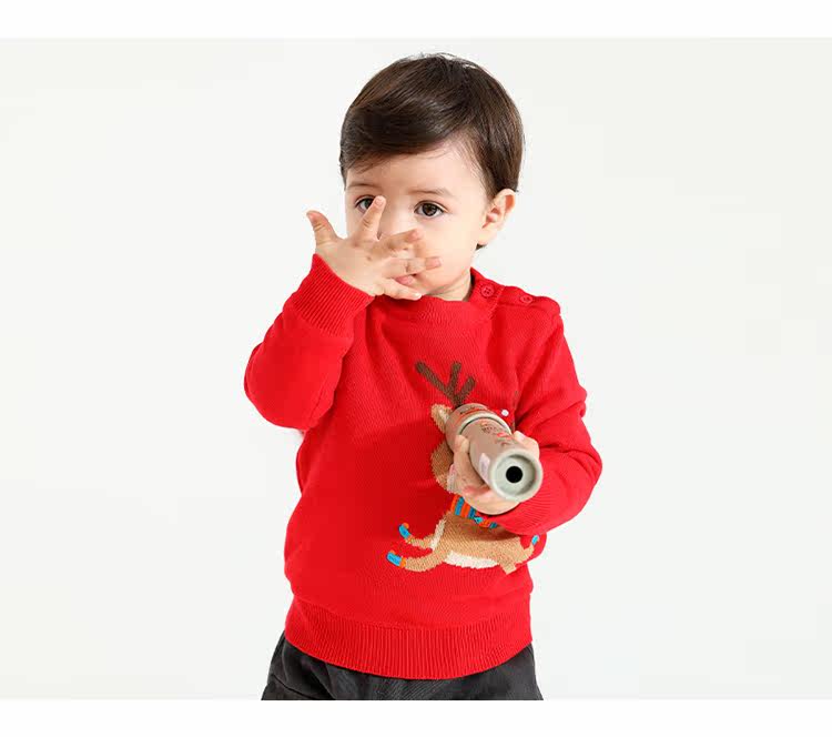 Детский флисовый зимний красный трикотажный удерживающий тепло свитер