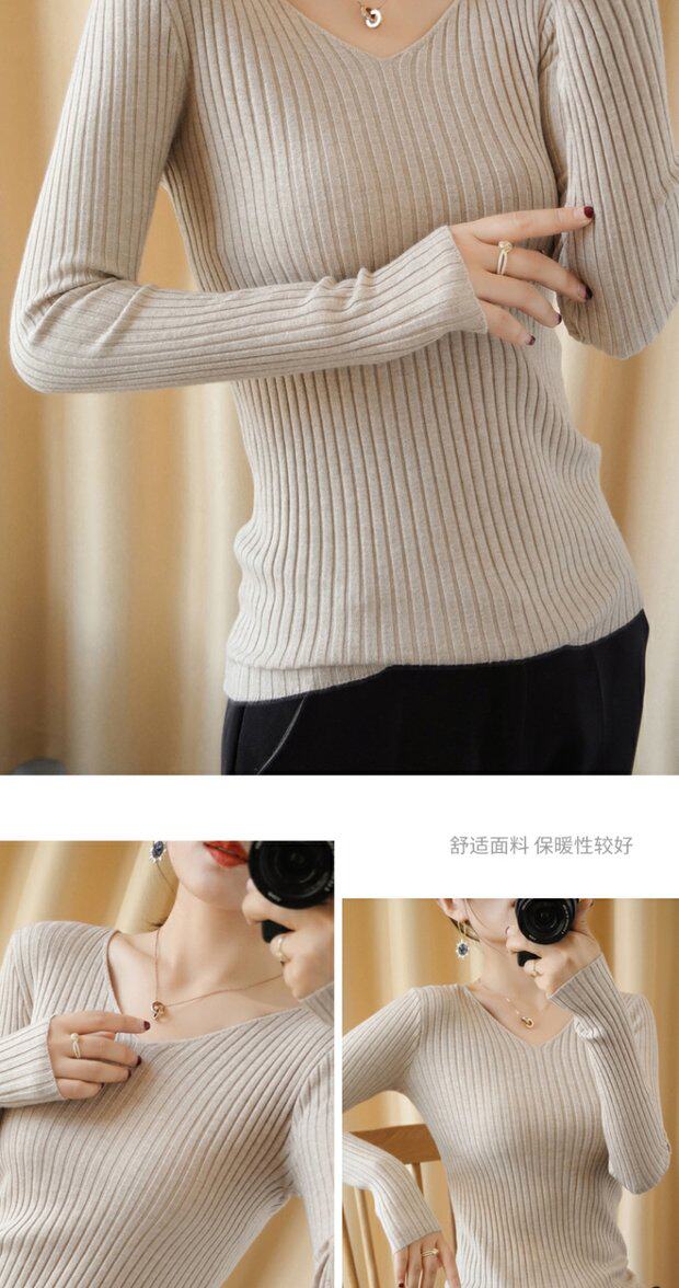 Шерстяной осенний свитер, трикотажный базовый приятный телу лонгслив, V-образный вырез, 2020 года, городской стиль, облегающий крой
