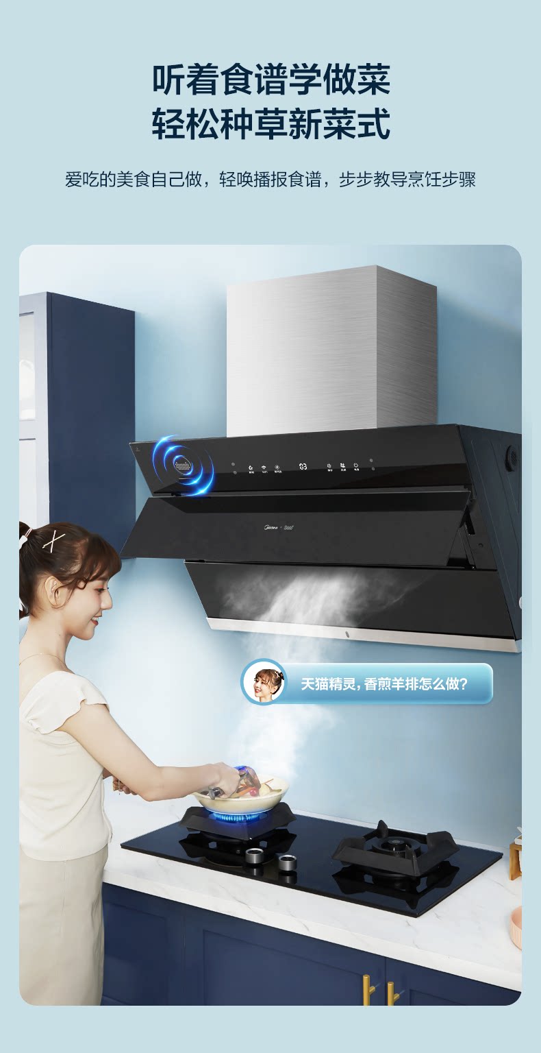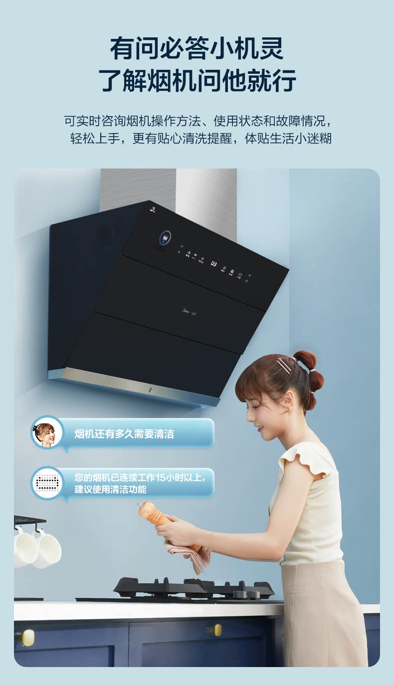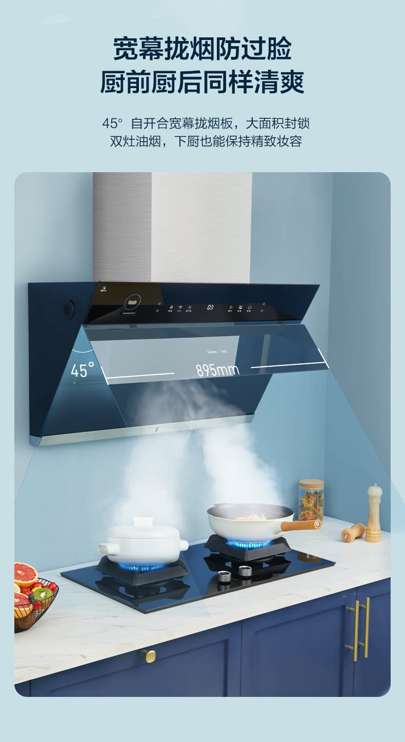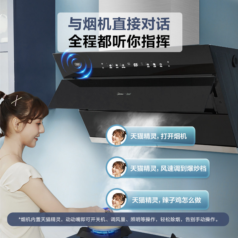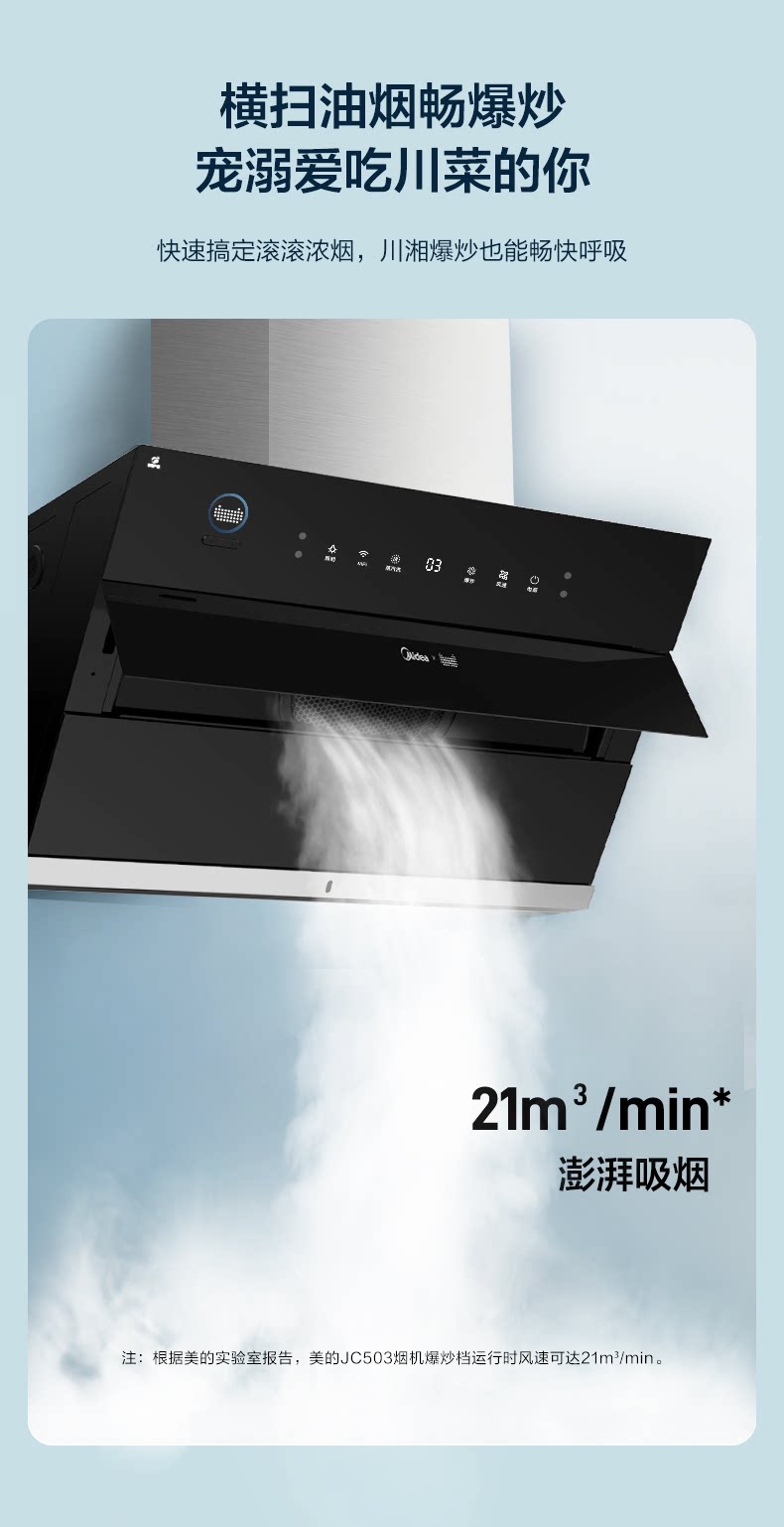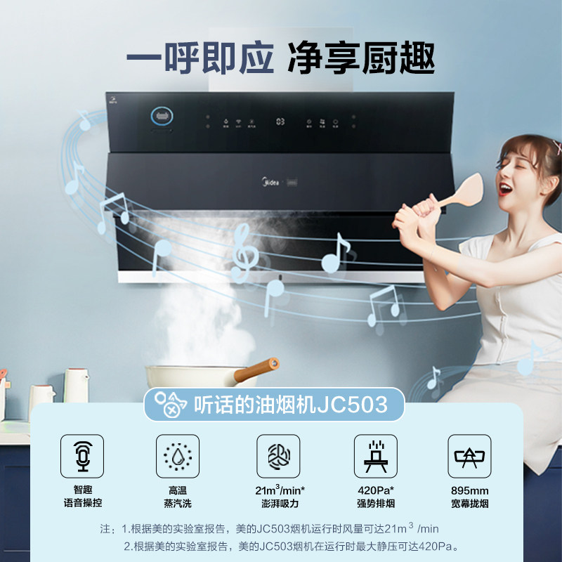 Midea JC503 боковой всасывающий дым всасывающий капюшон всасывающий капюшон домохозяйственная кухня большая всасывающая сила самостоятельно промывая паровая интеллект