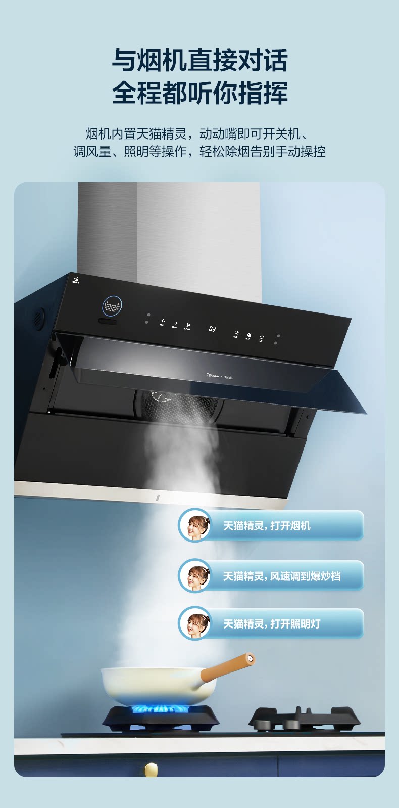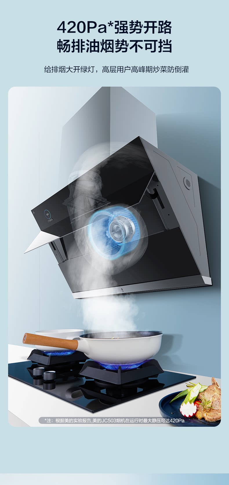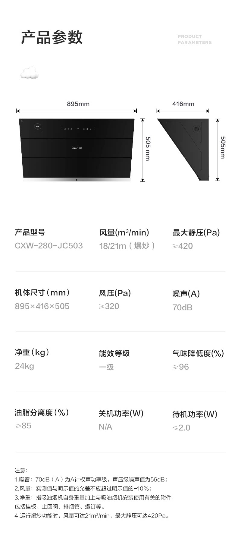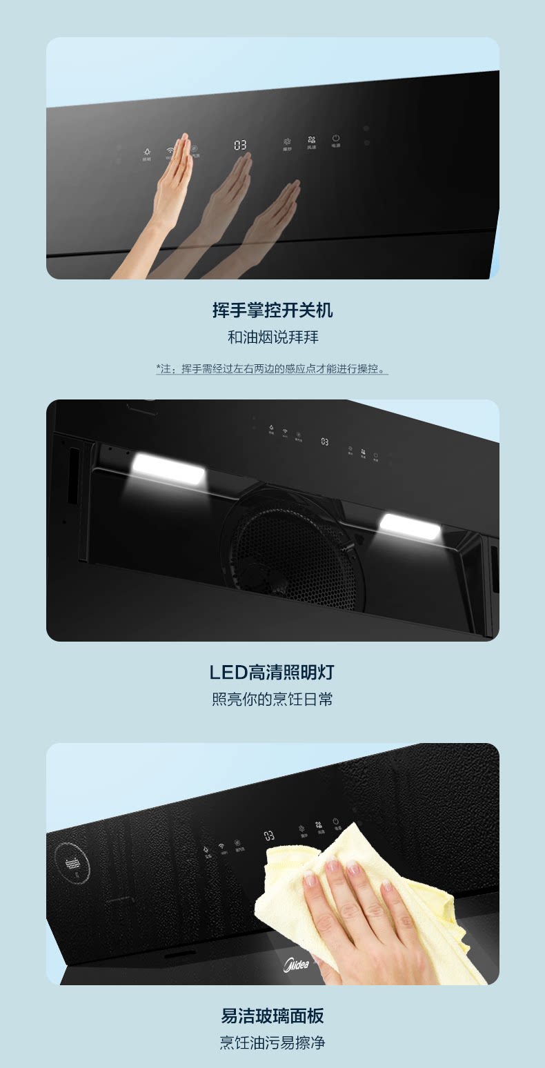 Midea JC503 боковой всасывающий дым всасывающий капюшон всасывающий капюшон домохозяйственная кухня большая всасывающая сила самостоятельно промывая паровая интеллект