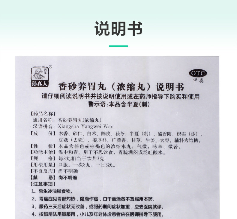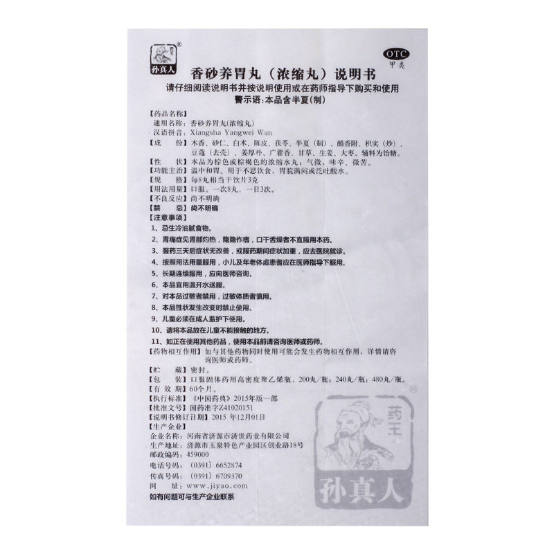 药王孙真人 Таблетки Xiangsha Yangbu (концентрированные таблетки) 480 таблетки*1 бутылка/коробка, вонючая селезенка и дефицит желудка, рвота кислотная вода