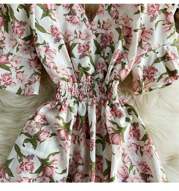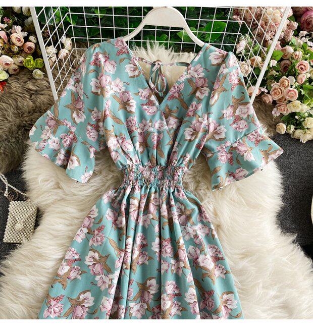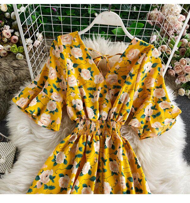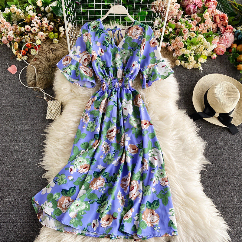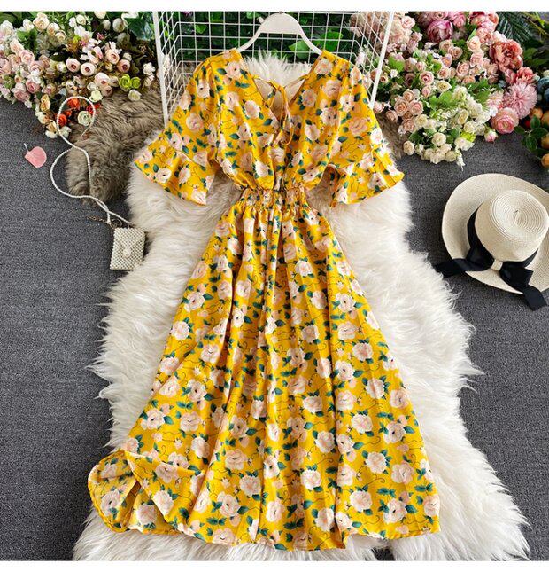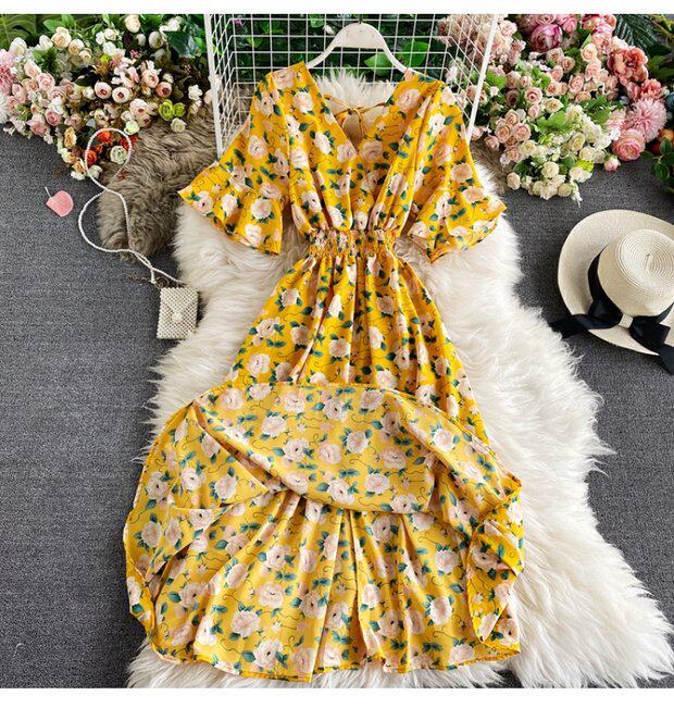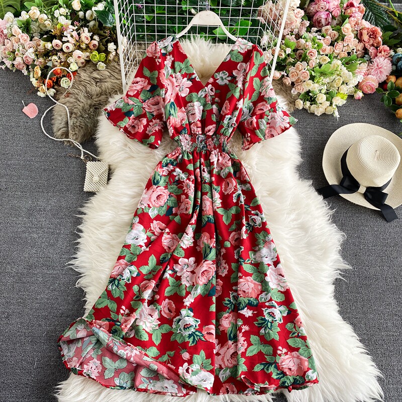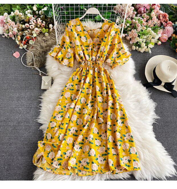 Модная летняя одежда, мегафон, приталенный шифоновый корсет, милое модное платье, длинная юбка, V-образный вырез, с рукавом