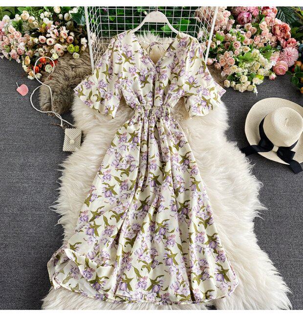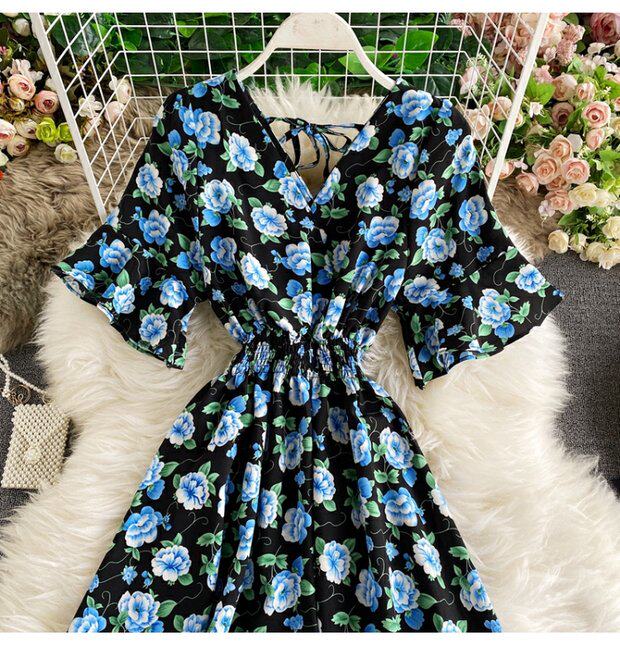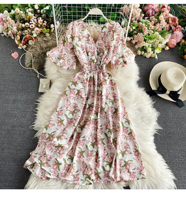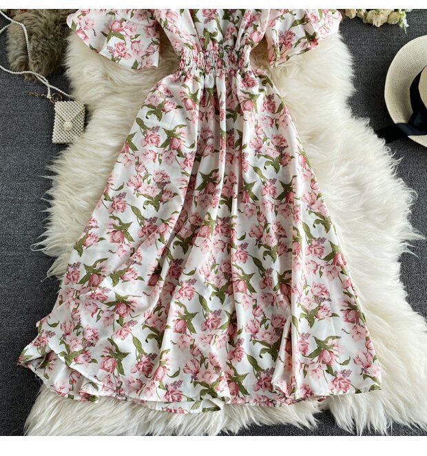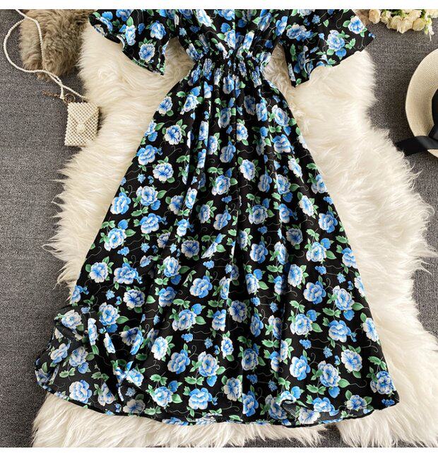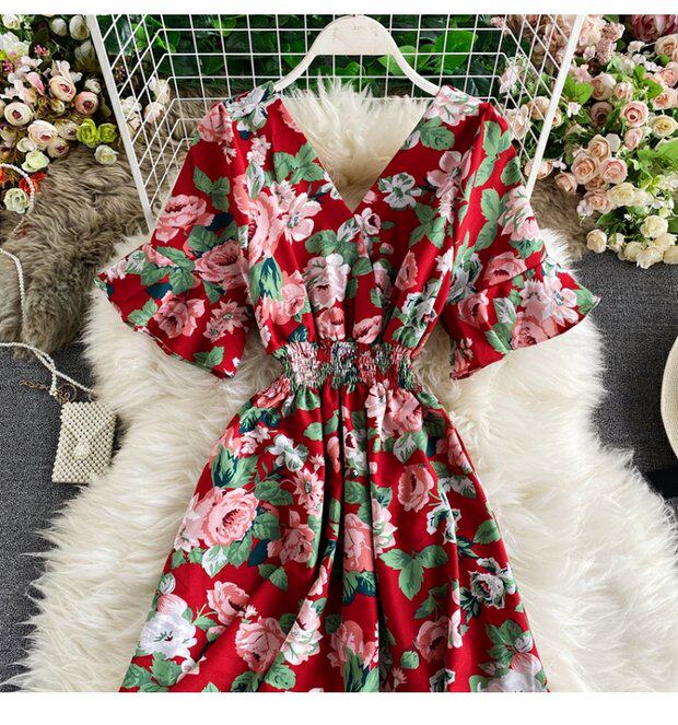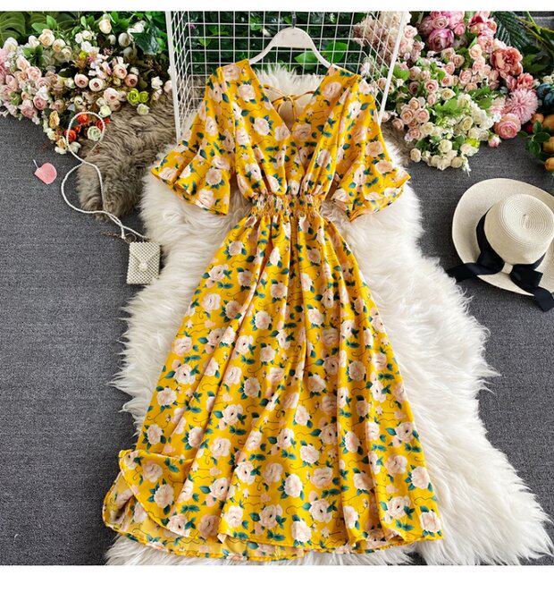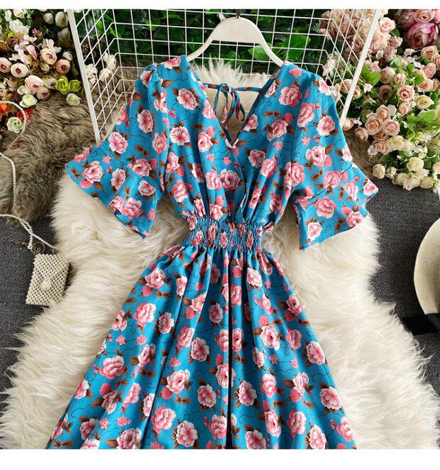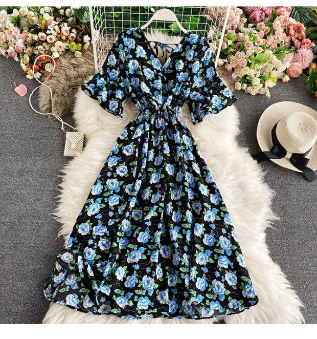 Модная летняя одежда, мегафон, приталенный шифоновый корсет, милое модное платье, длинная юбка, V-образный вырез, с рукавом