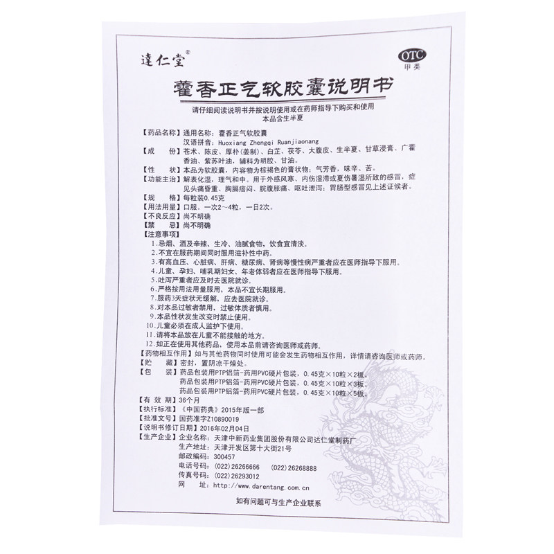 达仁堂 Huoxiang Zhengqi мягкие капсулы 0,45 г*10 зерна*2 пластины для расстояния брюшной полости, головокружения, головокружения, тяжелой грудной груди.