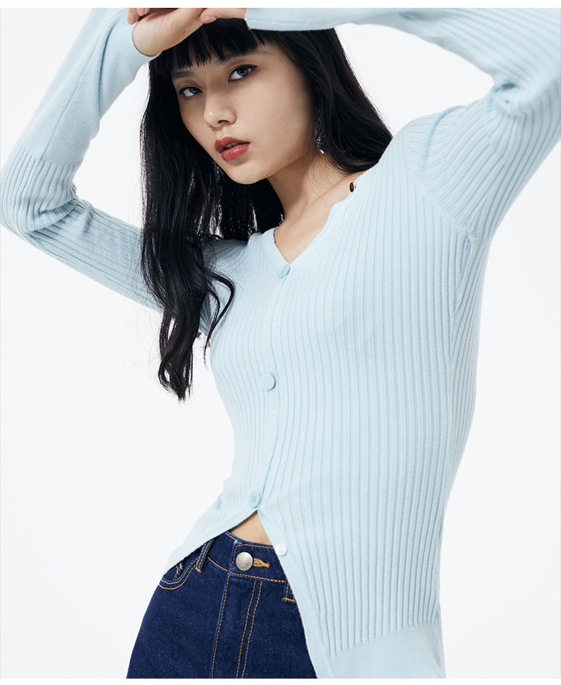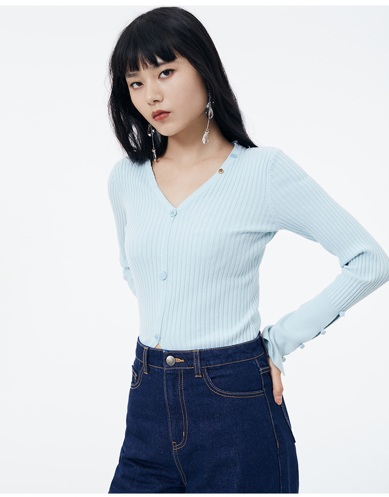 Осенний короткий лонгслив, базовый приятный телу свитер, 2020, облегающий крой, V-образный вырез