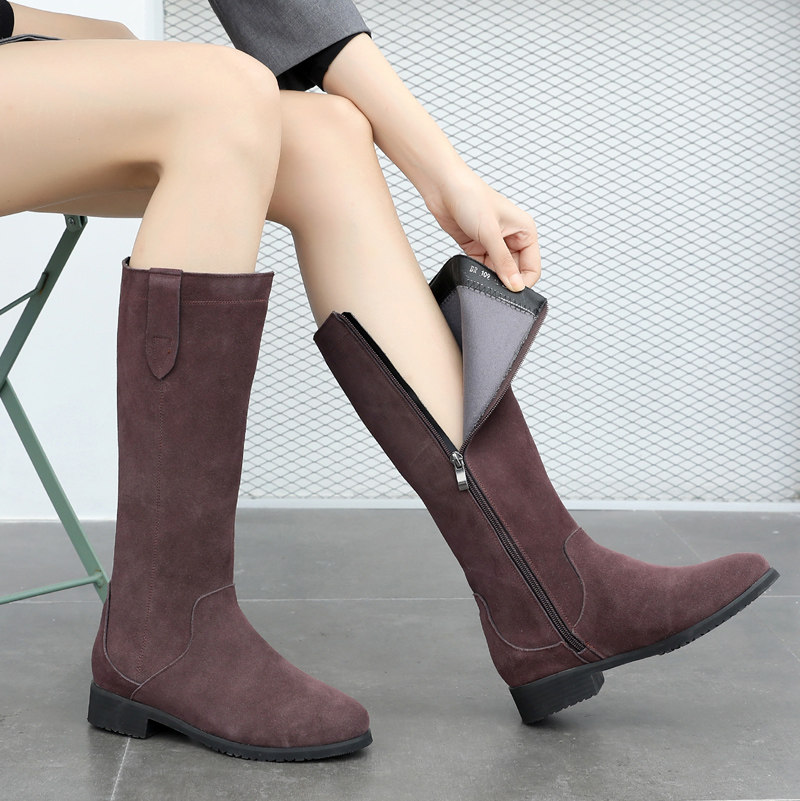 Матовые ботинки, зимние коричневые высокие сапоги, средней длины, 2022, из натуральной кожи, большой размер