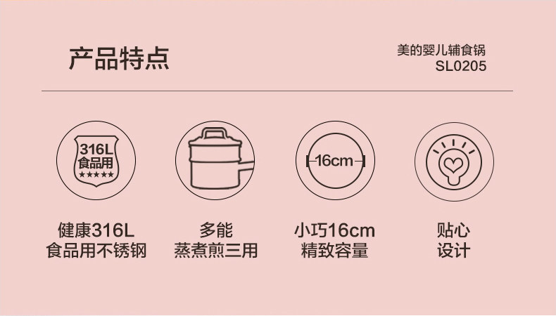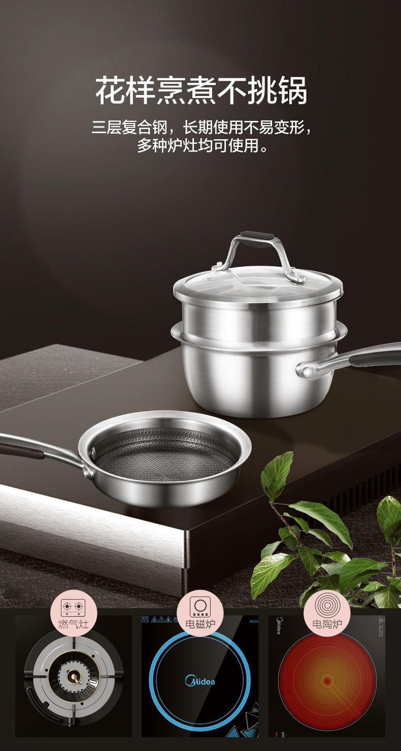 Midea Pot Set Baby Дополнительная продуктовая плита 316L из нержавеющей стали.