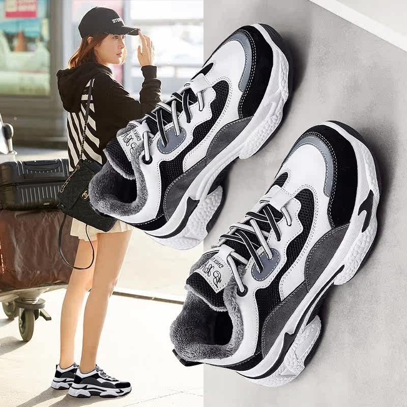 Зимние бархатные туфли для папы для женщин, зимние универсальные туфли из утепленного хлопка, зимняя повседневная зимняя обувь, зимняя теплая дорожная обувь для женщин