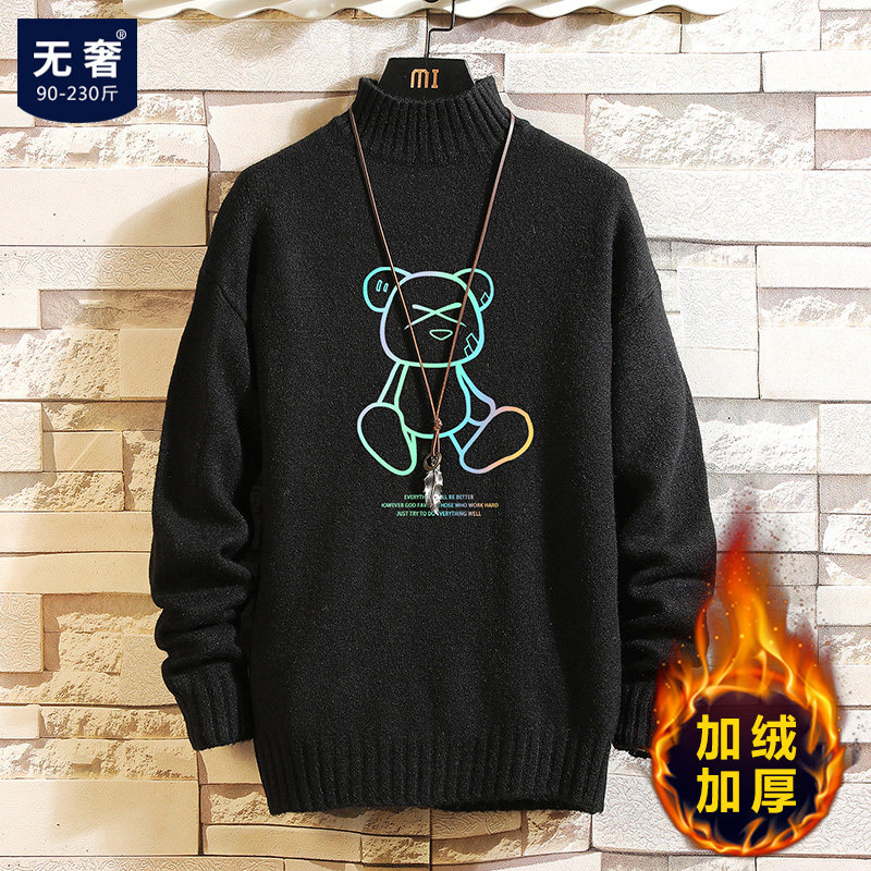Утепленный трендовый базовый шерстяной свитер, высокий воротник, в корейском стиле, оверсайз