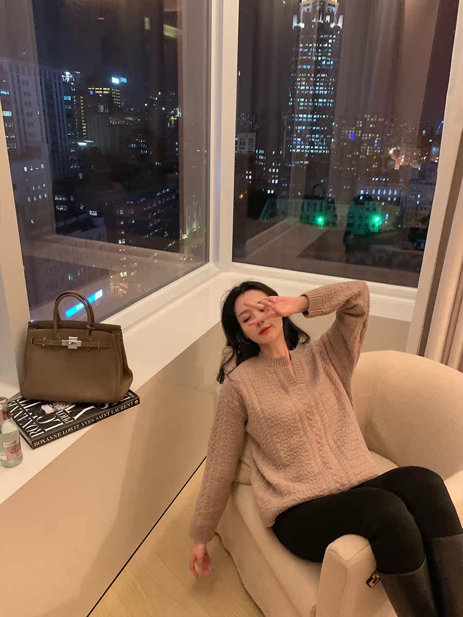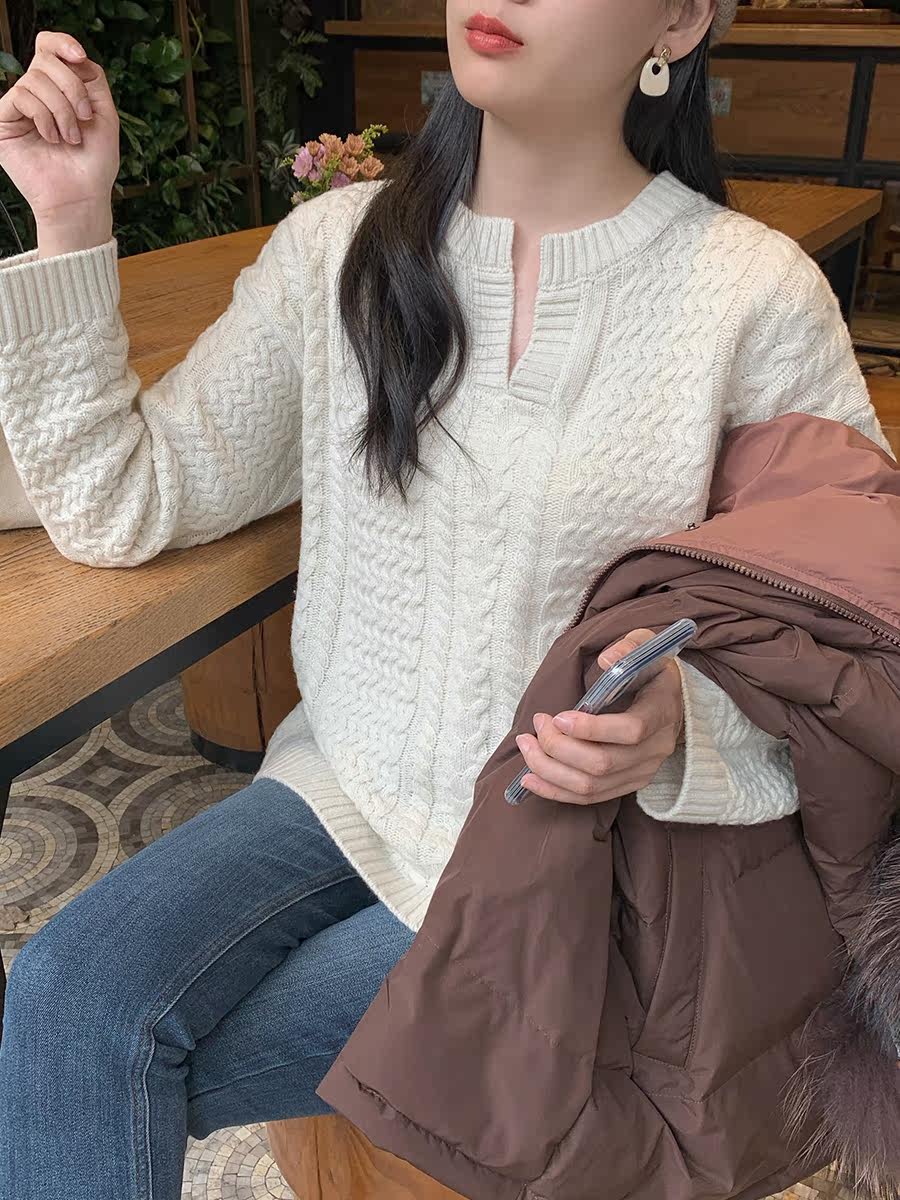 Сладкий свитер с тыквенной долиной ~ 100 Tsui Wool!Нежная японская система густо свободна на улице в осеннем и зимнем Z0166
