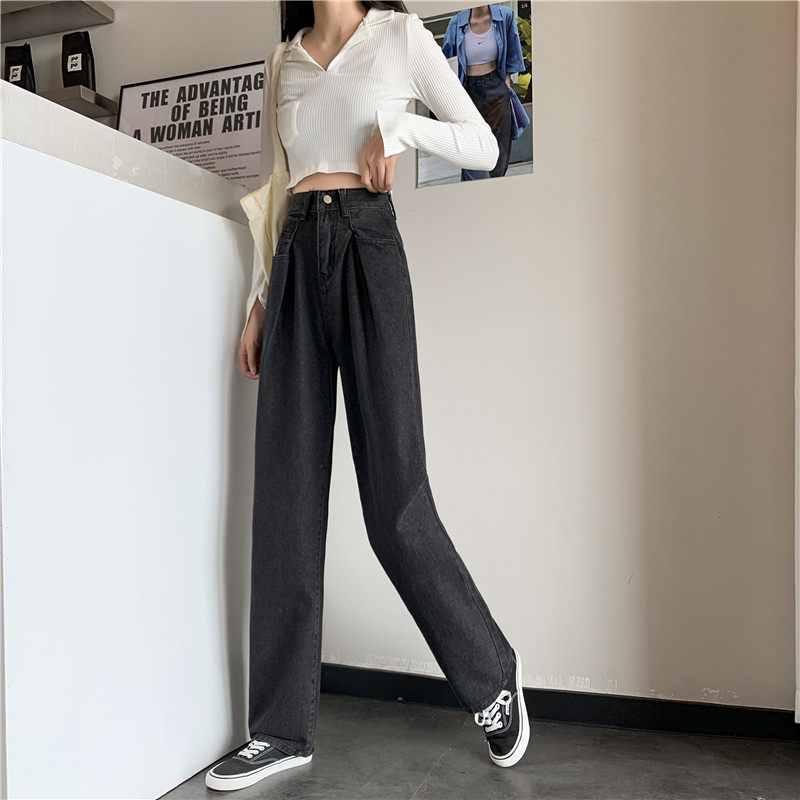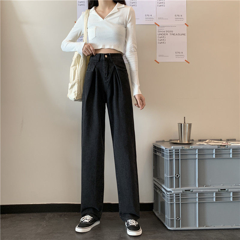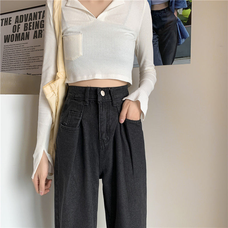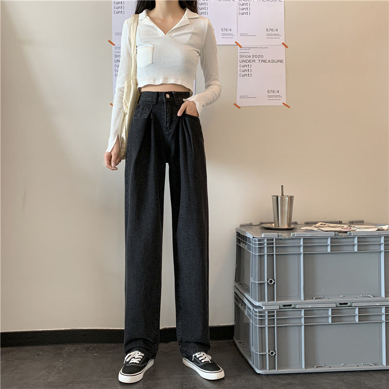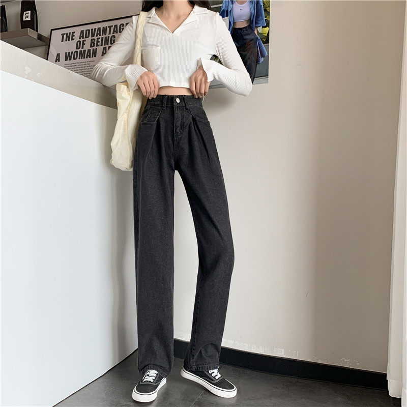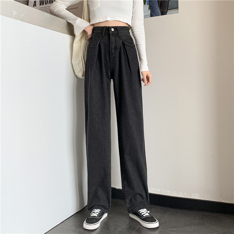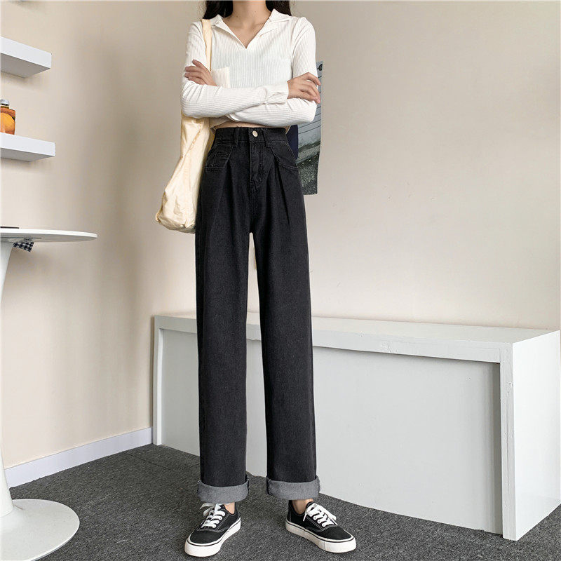 Осенние черные джинсы, штаны, свободный прямой крой, высокая талия, большой размер